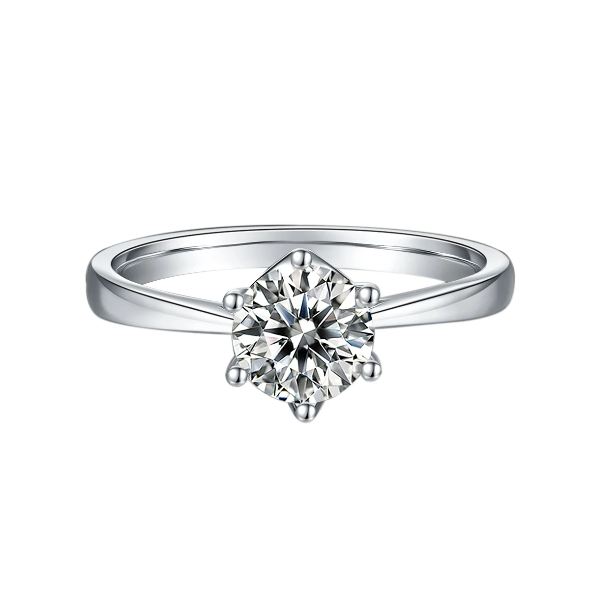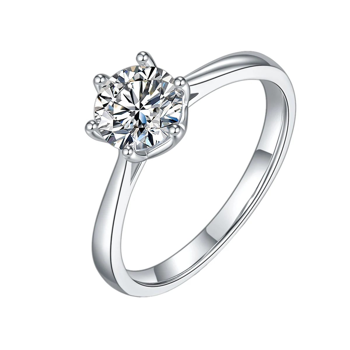 Кольцо женское из серебра 925 пробы с муассанитом, 6 зубцов