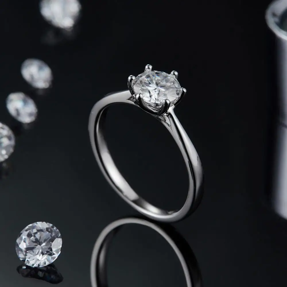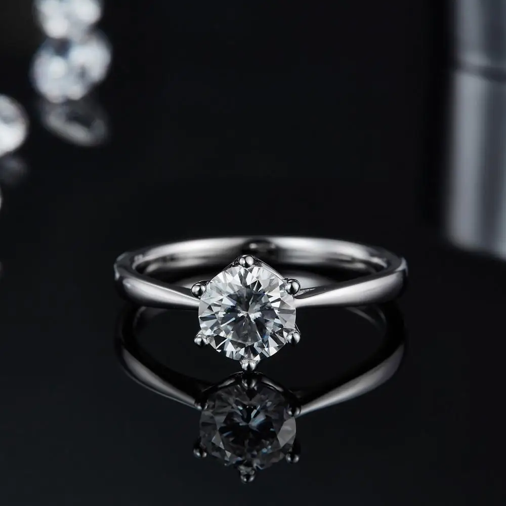 Женское кольцо из муассанита, с бриллиантом 6,5 мм, 6 зубцов