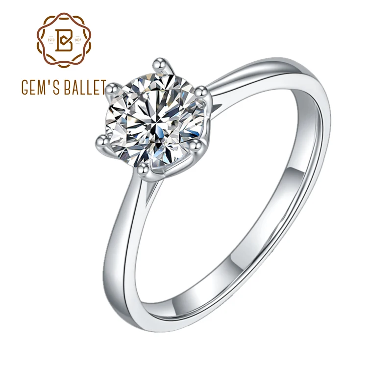 Женское балетное кольцо GEM'S, классическое круглое моиссанитовое к...