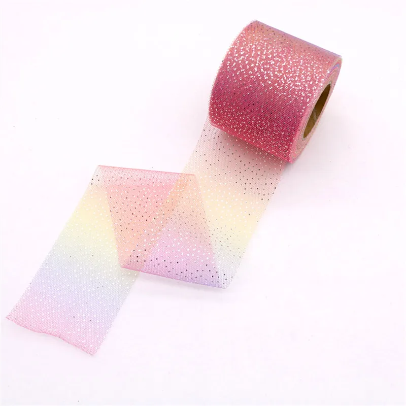 25 ярдоврулон 6 см серебряная блестящая в горошек Радужная Тюлевая сетчатая Лента Сделай Сам головной убор органза ткань платье-пачка детские праздничные принадлежности
