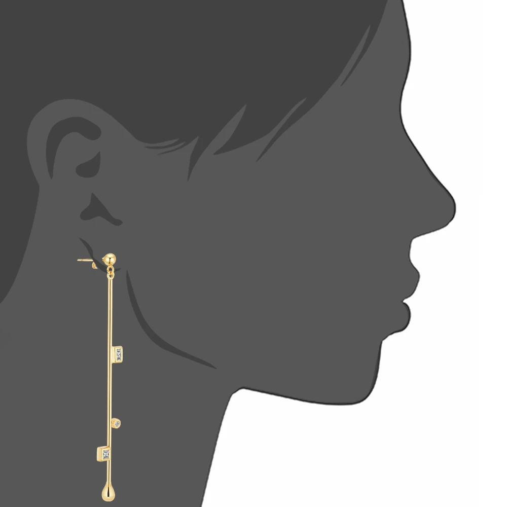 Женские длинные серьги-подвески с фианитом, золотистого цвета