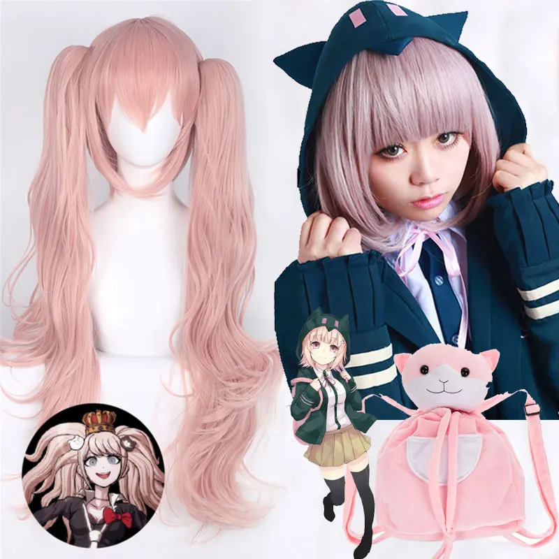 Аниме Danganronpa джунко эношима косплей парик Nanami ChiaKi парик кошка рюкзак женский розовый парик Dangan Ronpa термостойкие волосы