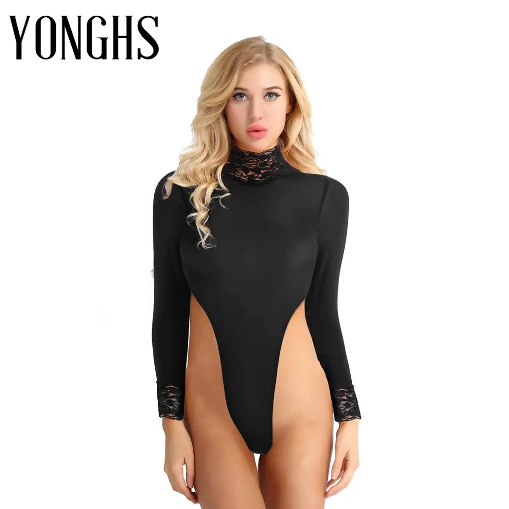 Женское нижнее белье, стринги, Прозрачное нижнее белье, сексуальный костюм с длинным рукавом, высокий вырез, стринги, купальник, нижнее белье