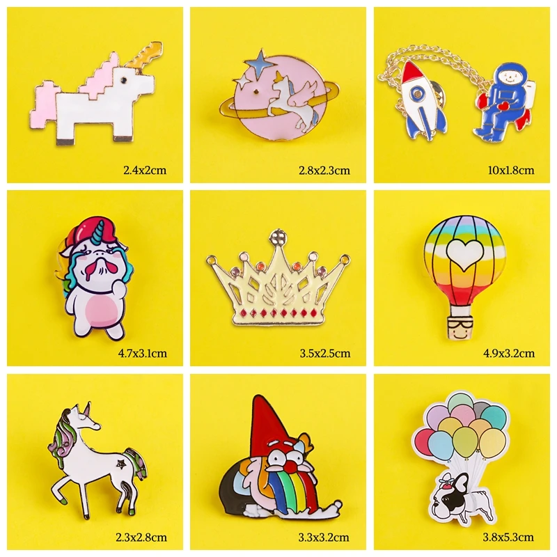 Мультфильм Единорог панда кролик узор кошка DIY металлические шпильки для бейджей милые значки Kawaii броши в виде самолета ювелирные изделия куртка Декор
