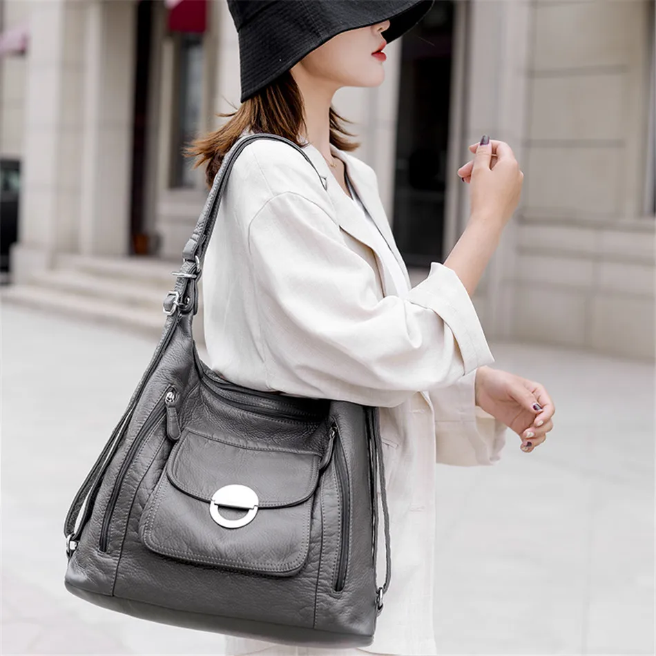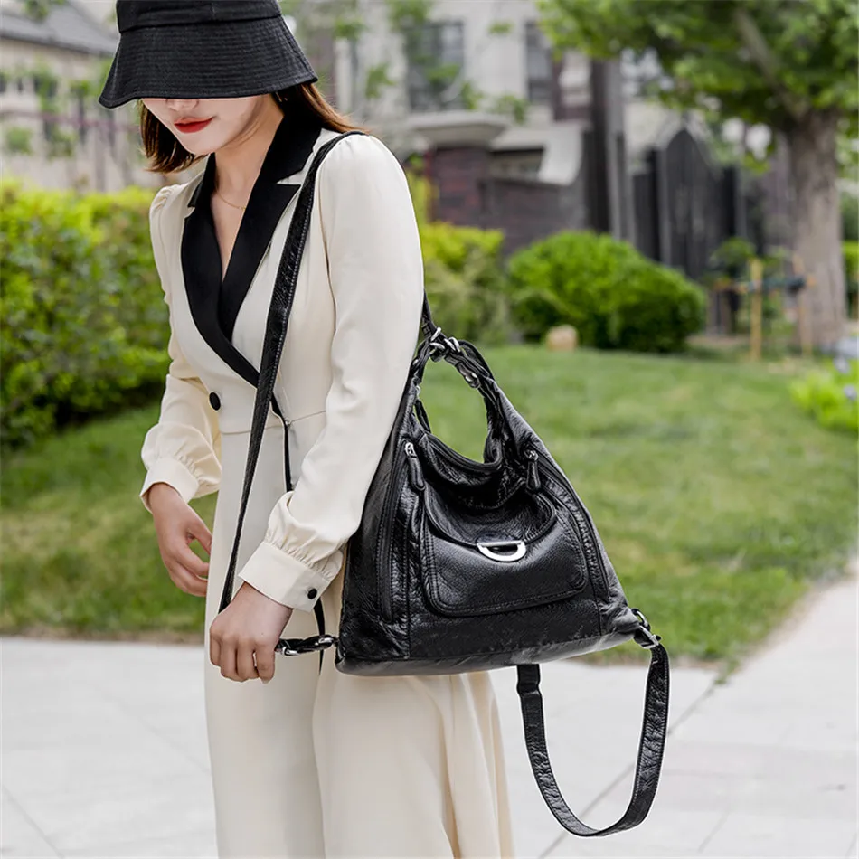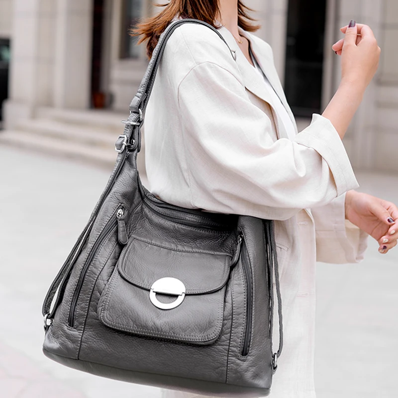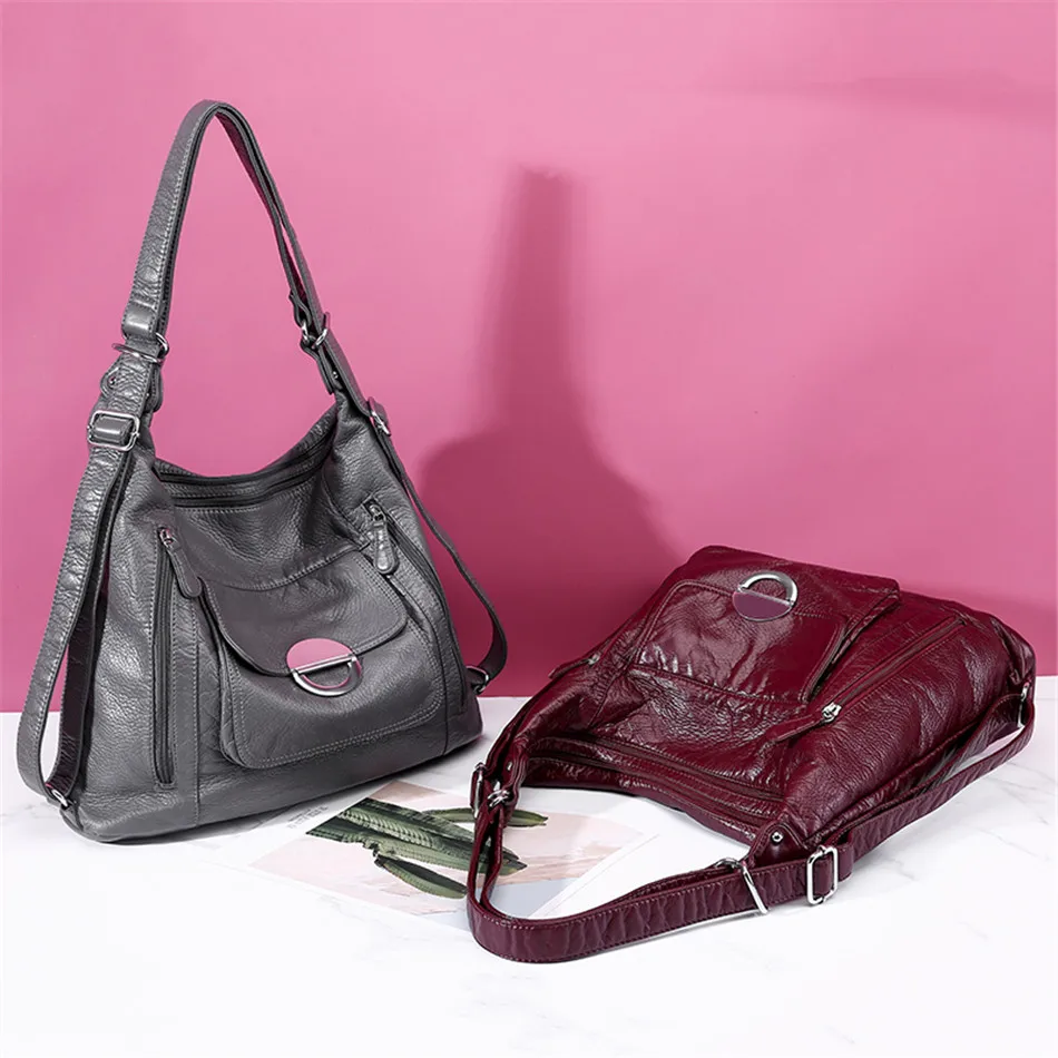 Женская сумка через плечо, из мягкой кожи, повседневная сумка-тоут, большая емкость, 2020