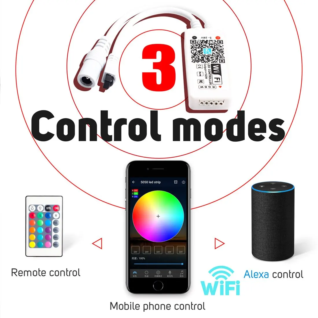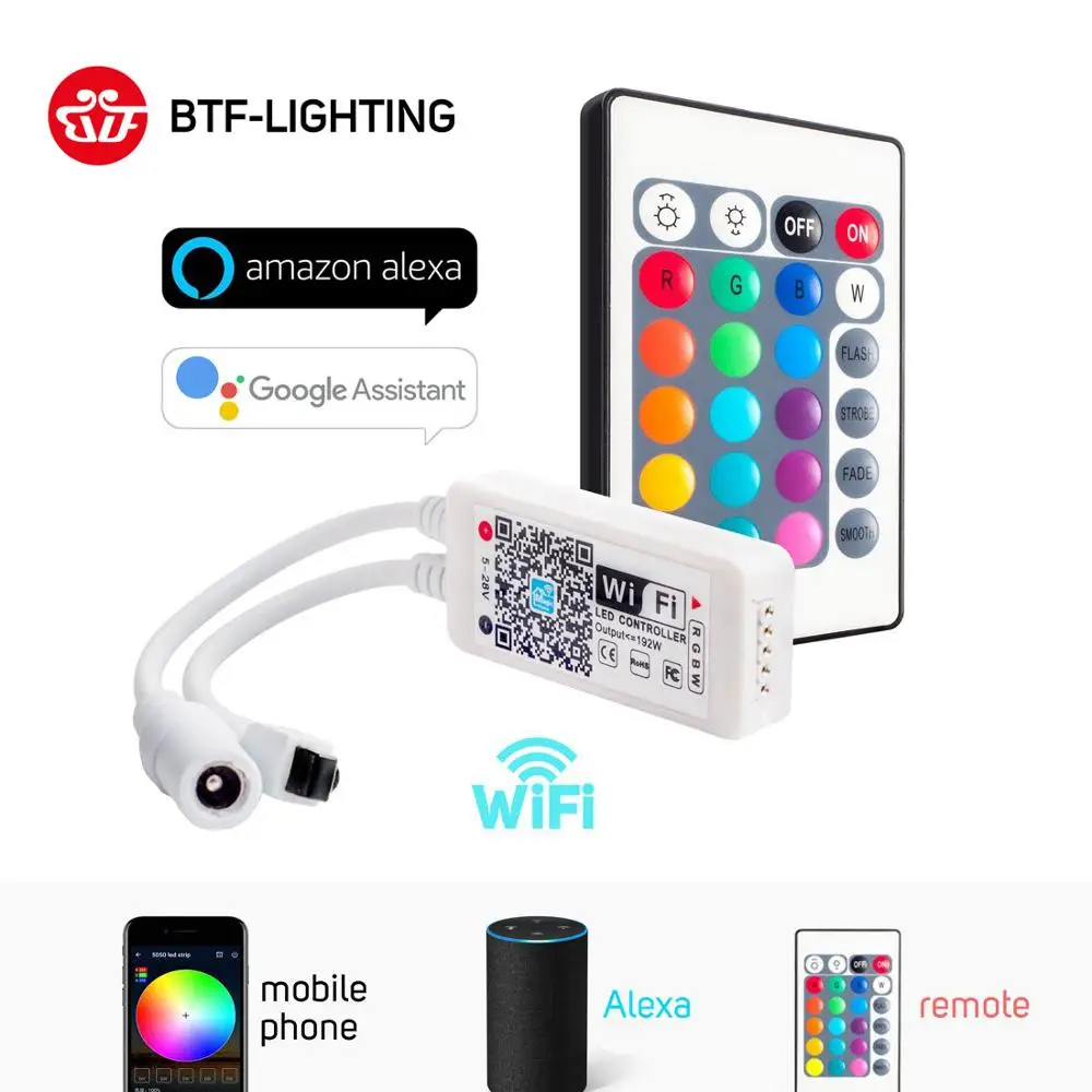 【 Для WS2811/WS2812B Тип 】 DC5V / DC12V-24V 3 pin Светодиодный светильник с полосками 2048 пикселей (рекомендуется 1000 пикселей). Обратите внимание, что холодный белый цвет, контролируемый приложением, не является чистым белым цветом, он смешивается по цвету.【 Работа с Amazon Alexa 】работа с Alexa / Google Home / IFTTT. Вы можете управлять светодиодными лампами с помощью своего голоса с помощью устройств Google assistant / Amazon Alexa. Вы можете включить/выключить свет, изменить цвет и настроить яркость с помощью этого беспроводного контроллера, более удобным и умным.【 3 вида режима подключения 】 1. Режим AP (точка доступа): Найдите устройство в списке wifi и подключите устройство напрямую. 2. Режим STA (станция): подключите контроллер к маршрутизатору и Используйте приложение для управления. 3. Мобильные сети (2g/3g/4g): Используйте мобильную сеть для управления светодиодной лентой.【 Несколько цветов и узоров 】 умный контроллер поддерживает управление голосом/музыкой, 16 миллионов статических типов цветов и 300 динамических режимов в приложении на ваш выбор. Используйте камеру телефона, чтобы выбрать светильник или настроить яркость и скорость.【 Управление приложением 】 контроллер Wifi может работать с устройствами с iOS 9,0 или выше системы и Android 4,0, отсканируйте qr-код на драйвере или руководстве пользователя, чтобы загрузить бесплатное приложение «Magic Home». Вилку сетевого шнура Джек 5,5 мм x 2,1 мм.【 Простая установка 】Comes с WI-FI контроллер (по вашему выбору) и разъемы (это WI-FI контроллер не может использоваться для 5,0 ГГц сети).Примечание: Если светодиодный цвет полосы не соответствует, например, вы выбираете красный, но цвет освещения зеленый. Этот товар не может временно решить проблему, но мы улучшим продукт в следующем поколении!