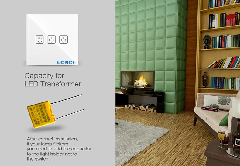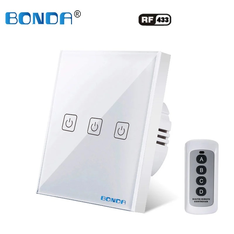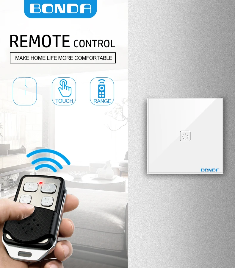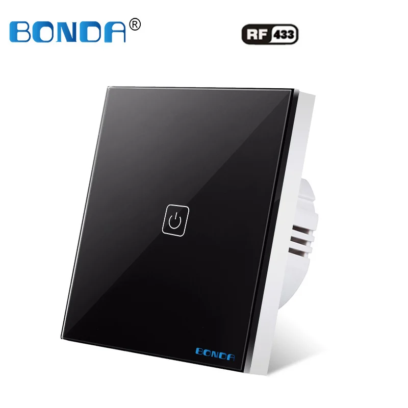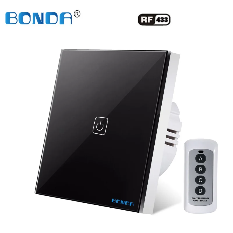 Настенный выключатель BONDA 220 В переменного тока, панель из закаленного стекла, с дистанционным управлением, 1 клавиша, 1 канал, с черсветильник ем