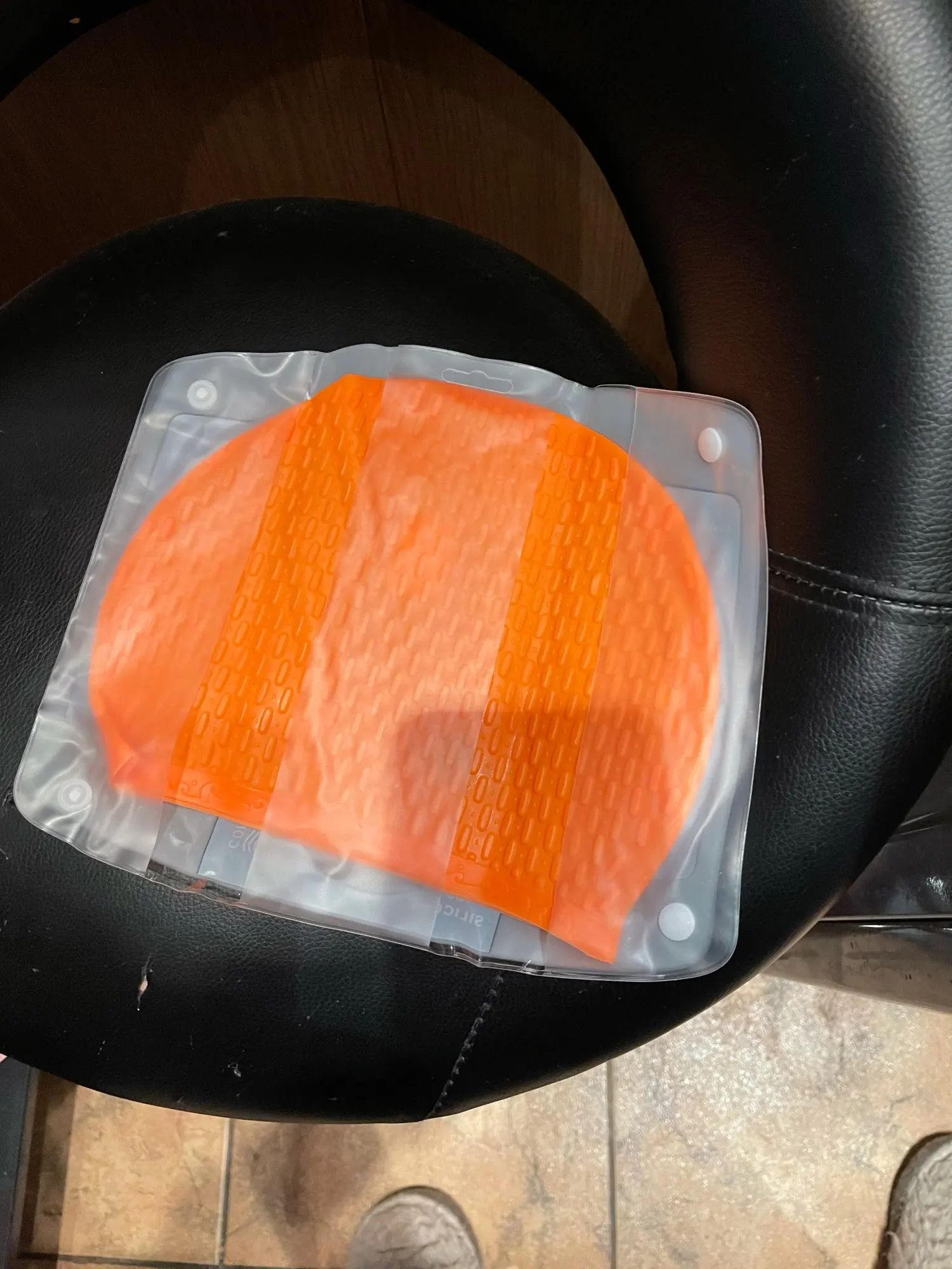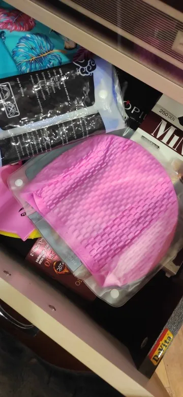 шапочка супер. Налезла на длинные густые волосы. мягкая, хорошо тянется. Очень довольна. Обычные резиновые рвутся с первого раза или когда волосы все засовываешь, очень давят на голову. Доставка 10 дней