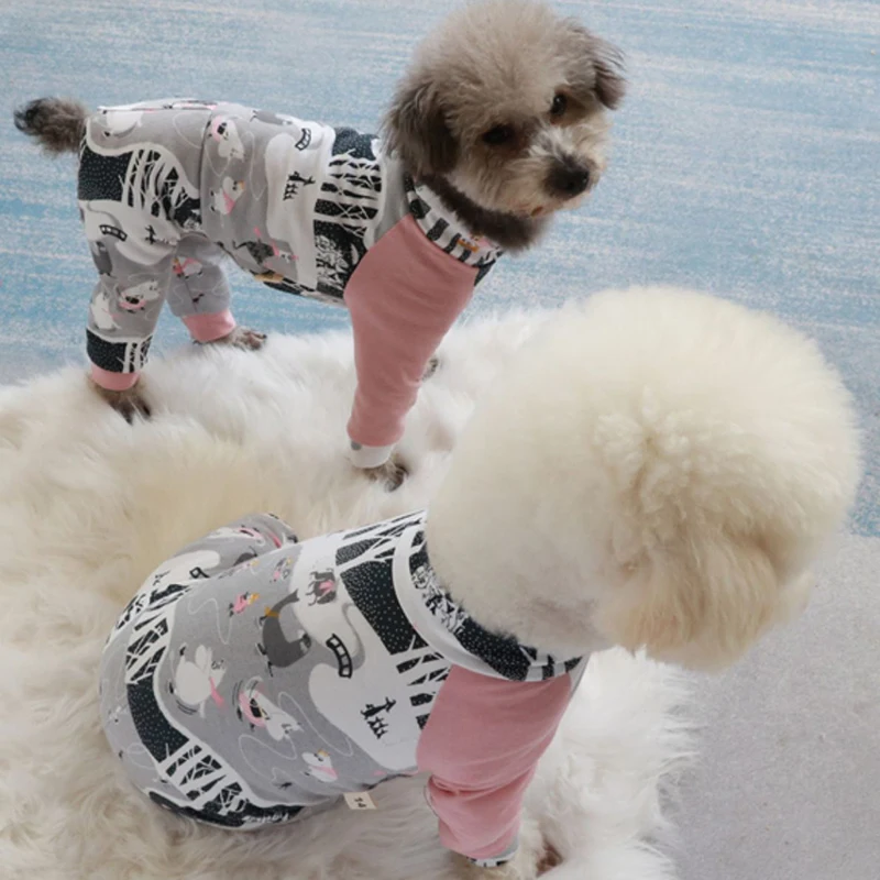Комбинезон для собаки с принтом тонкая одежда для щенков 100% хлопок комбинезон для маленьких собак с длинным рукавом Пижама Чихуахуа Пудель Толстовка