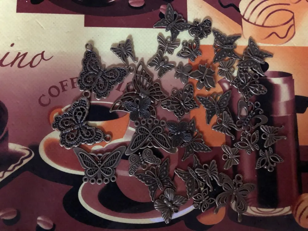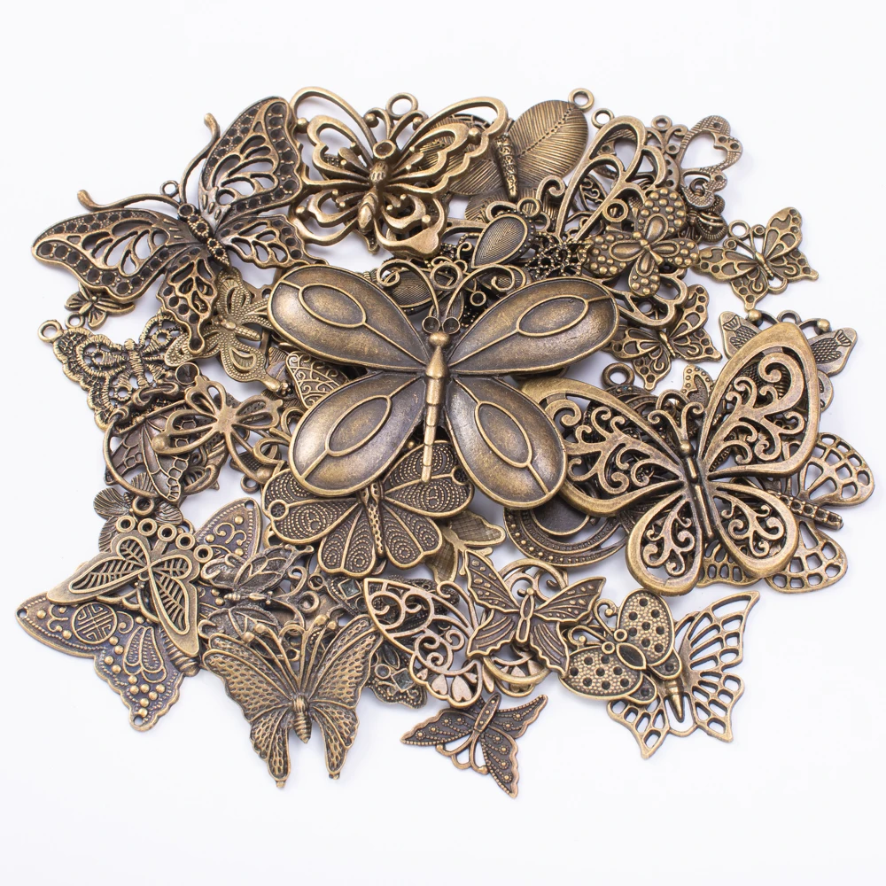 Кулон с подвеской в виде бабочки металлический, антикварный бронзовый браслет г