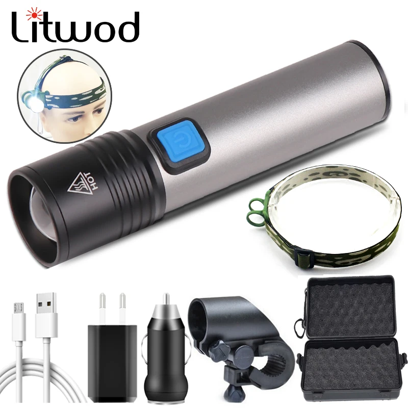 XM-L T6 USB Перезаряжаемый светодиодный фонарик для кемпинга, масштабируемый фонарик, литиевая батарея, водонепроницаемый со встроенными светодиодными лампами 1200 мАч