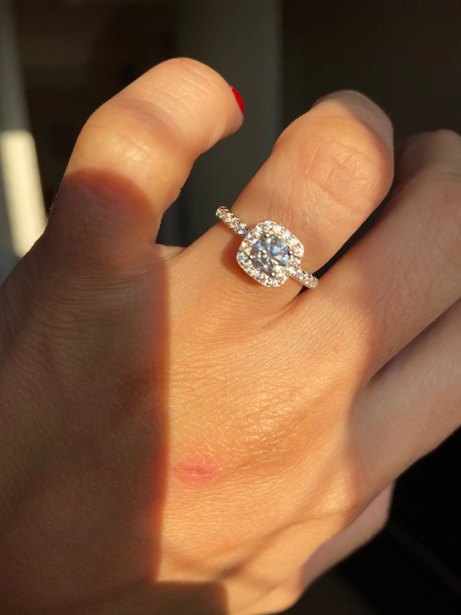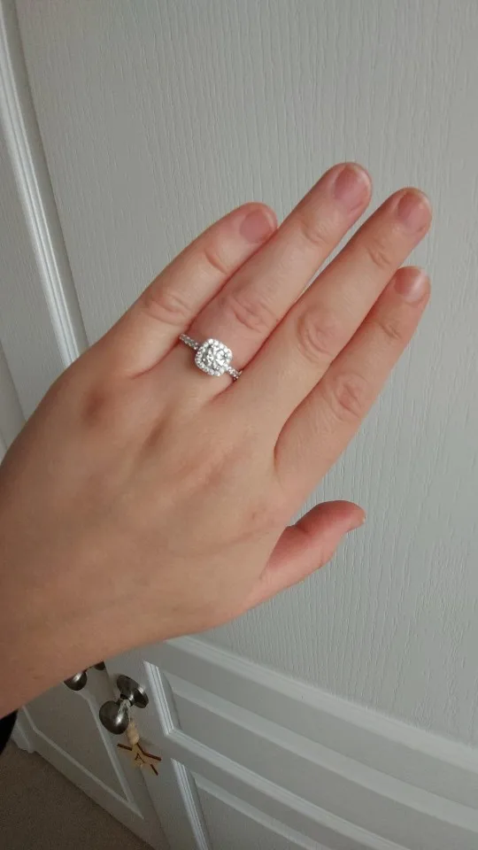 Красивое кольцо. Точно так же, как на фотографии. Видели комментарии людей, которые думал, что камень квадратный, но нет, Круглый, кольцо да, имеет квадратную форму. Камень 0,5 карат, идеальный. Камень поставляется с сертификатом и имеет место на месте. Выглядит очень драгоценным камнем. Меньше, больше похоже на драгоценность. Стол Средний идеально! Следуйте инструкциям и используйте измерительную ленту для выбора размера. 5,5 см было отлично. Надежный продавец. Прибыл в течение 16 дней для SP/captory.