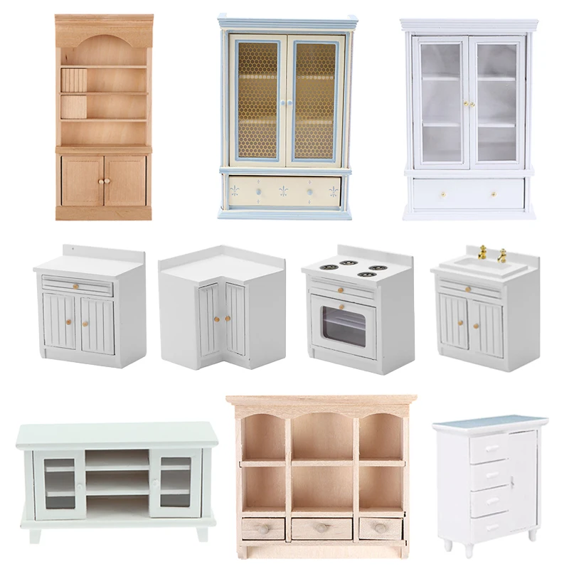 Миниатюрная кухонная мебель для кукольного домика 1:12, 1 шт., белые шкафы, витрина, детский подарок