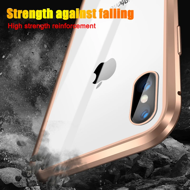 Магнитный металлический чехол для iPhone 12, 11 Pro, XS Max, XR, двусторонний стеклянный чехол для iPhone 7, 8, 6s Plus, SE, 360 г.