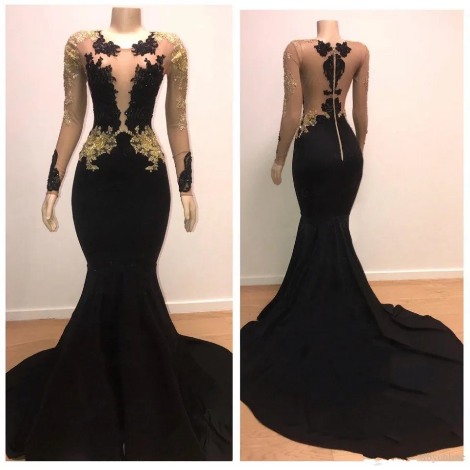 Черные элегантные кружевные вечерние платья 2020, длинные иллюзионн...