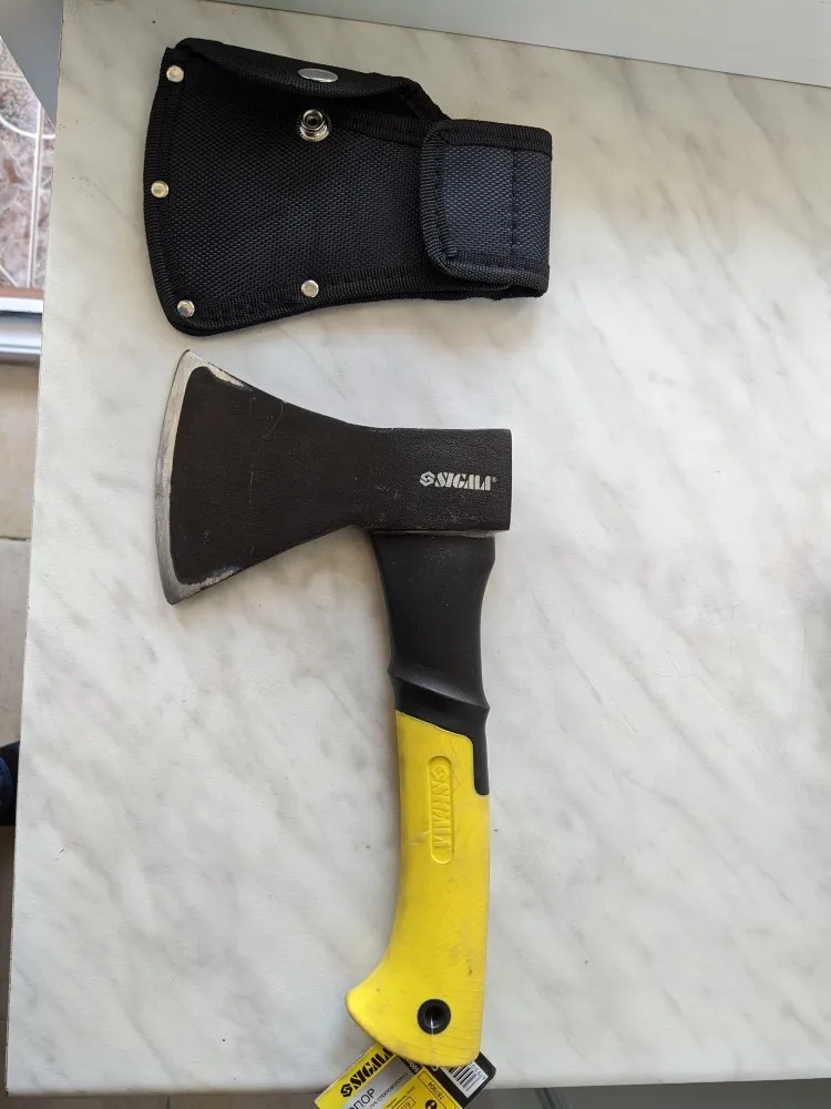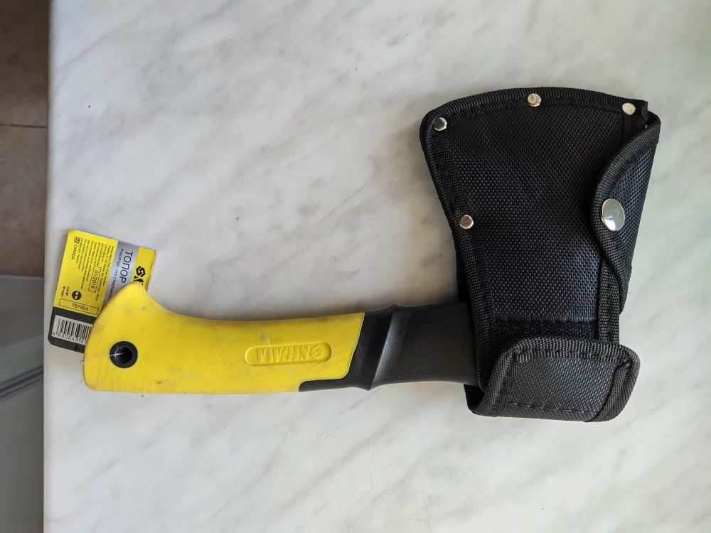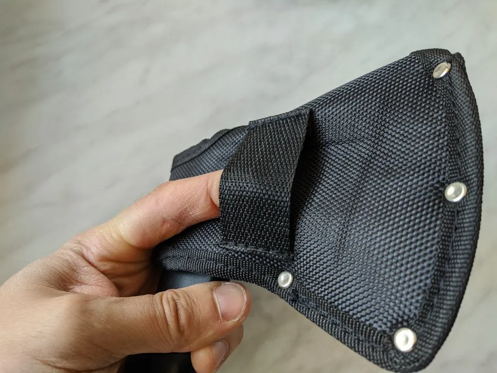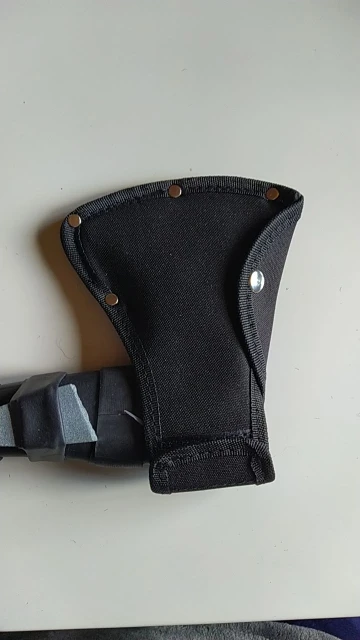 не хватает размеров чехлов для правильного выбора. материал плотный, прошит хорошо, но для моего топора длина пяточного клапана чуть меньше, чем нужно - пятно контакта на "липучке" всего лишь 1 см по ширине. можно конечно подточить пятку топора, но не хочется возиться с этим, наверное просто смирюсь. за два доллара это очень хороший чехол.