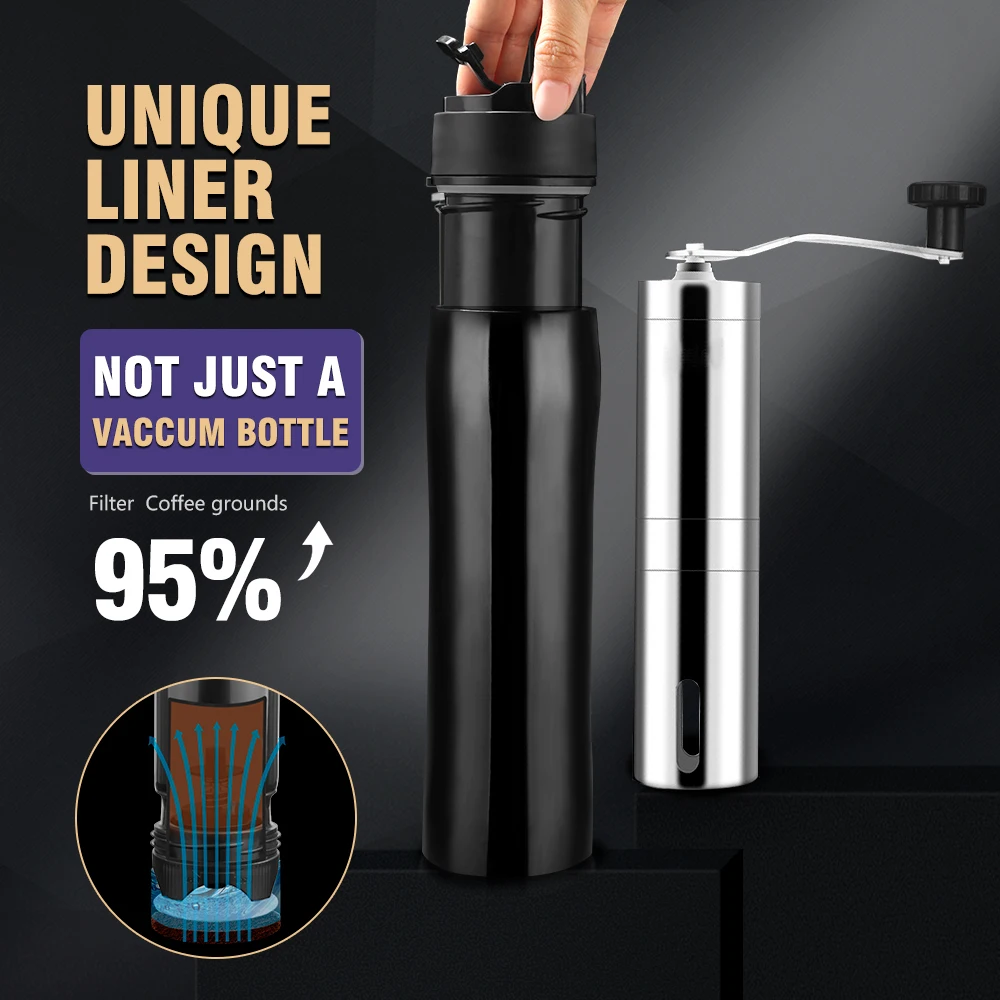 Оригинальная портативная дорожная кружка с вакуумной изоляцией Френч-пресс для приготовления кофе, нержавеющая сталь премиум-класса, для кофе Шлифовальные наборы, для самостоятельной сборки