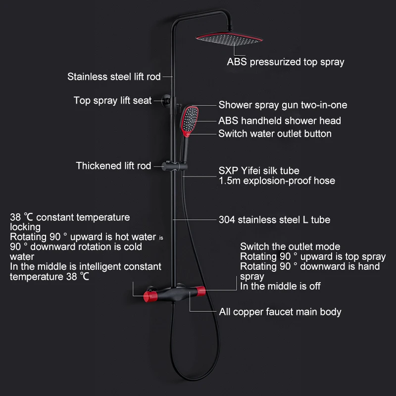 Термостатический смеситель для душа EL9402, настенный кран Водопад, дождевой Душ, горячая и холодная вода, ручной душ