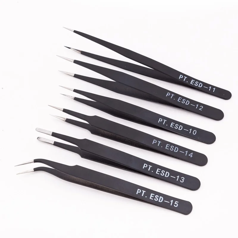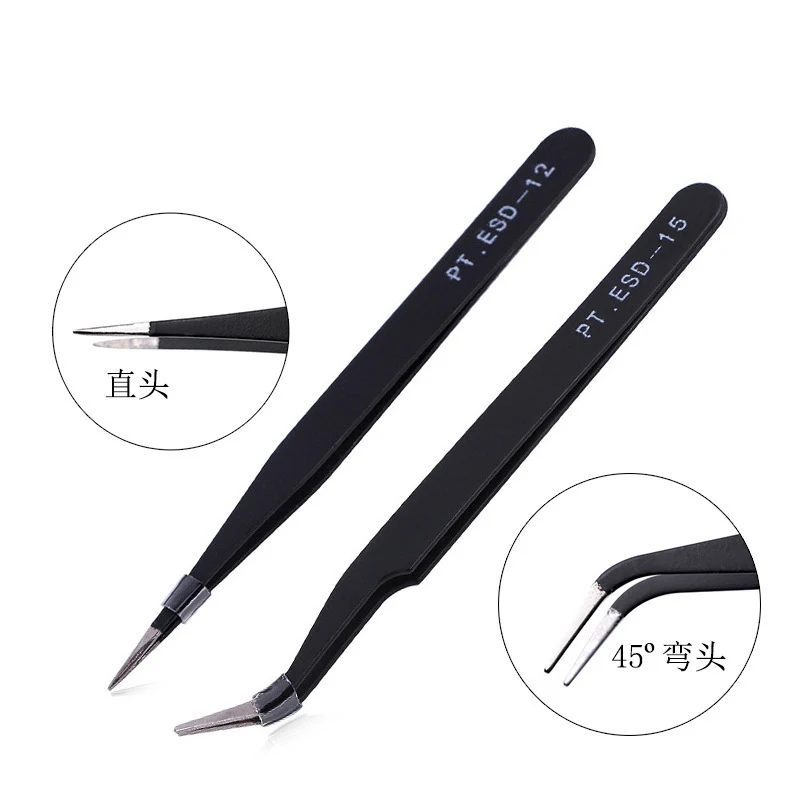 Антистатический пинцет ESD, 1 шт., инструменты для обслуживания из нержавеющей стали, промышленные прецизионные изогнутые прямые пинцеты, инструменты для ремонта