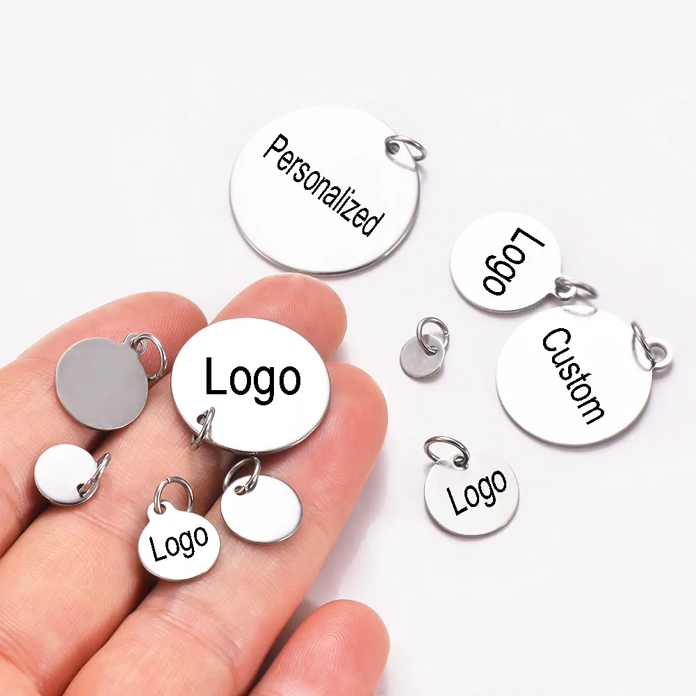 Круглые бирки из нержавеющей стали с гравировкой на заказ, маленькие логотипы сделай сам для изготовления ювелирных изделий, 30 шт., 6810122025 мм