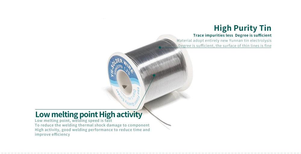 Он принимает совершенно новый Юньнань оловянный Электролизный материал, эгрии достаточно, поверхность тонких линий тонкая.Низкая температура плавленияНизкая температура плавления, скорость сварки быстрая, чтобы уменьшить повреждение сварочного теплового удара компоненту.Высокая активность, хорошая производительность сварки, чтобы сократить время и повысить эффективность.