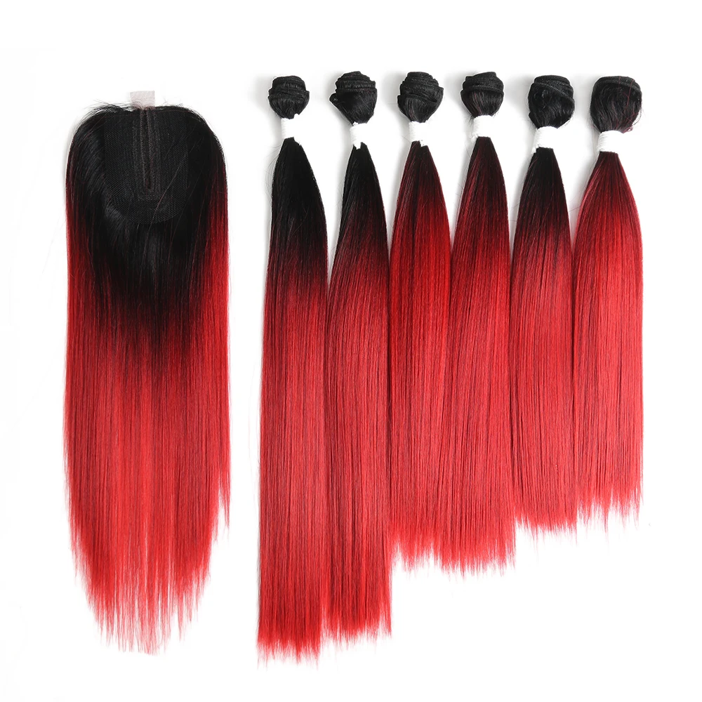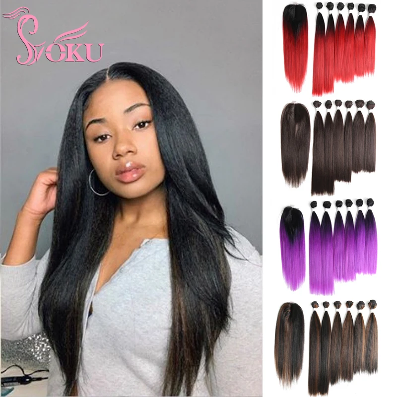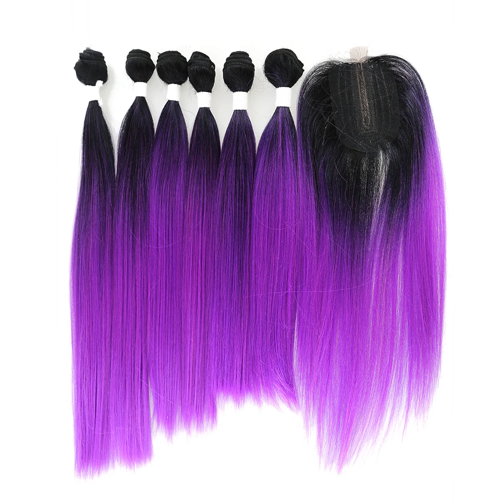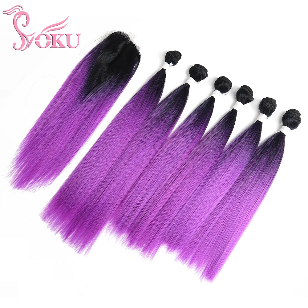 Пряди синтетических волос SOKU, пряди длинных волос фиолетового и красного цветов с застежкой на шнуровке