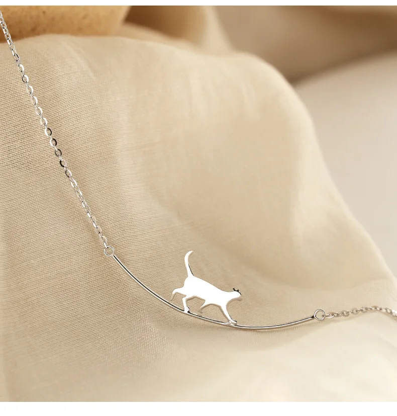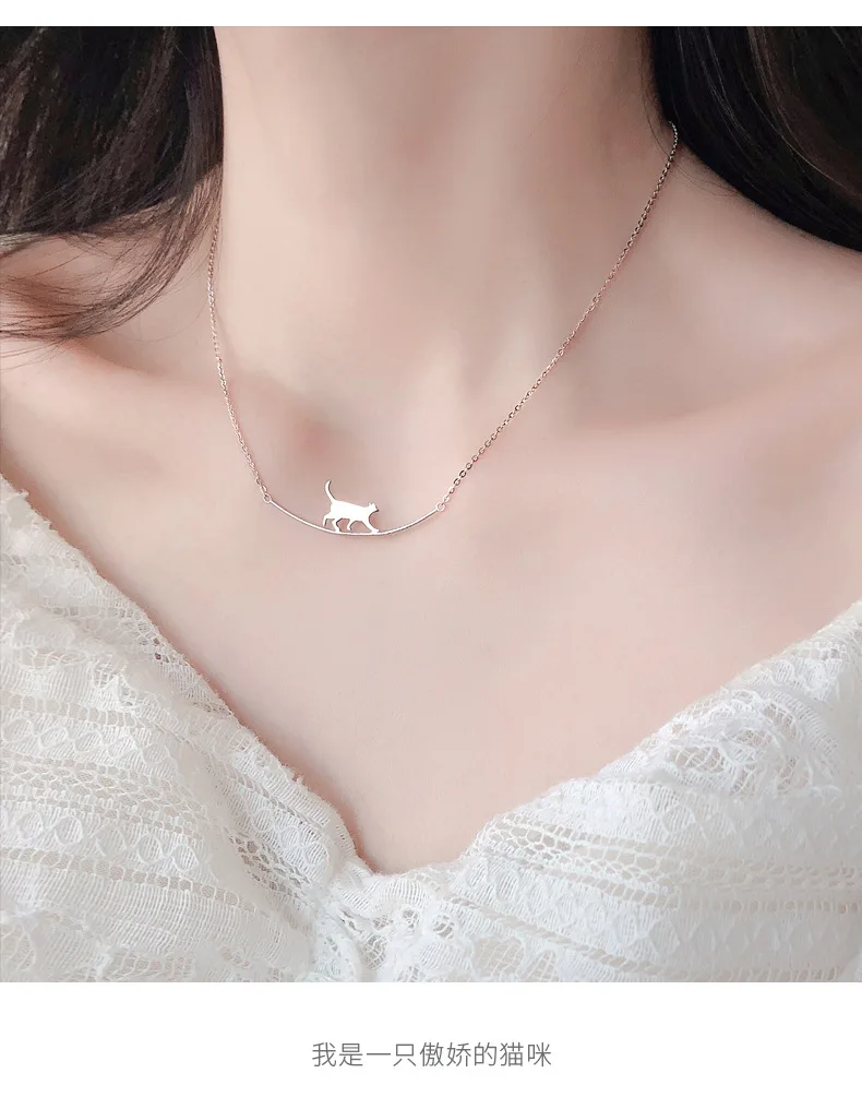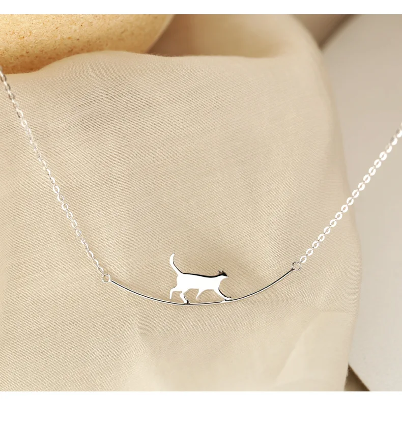 Ювелирные изделия из серебра 925 пробы, в виде изогнутого кота, XL090, ключицы ожерелья цепи