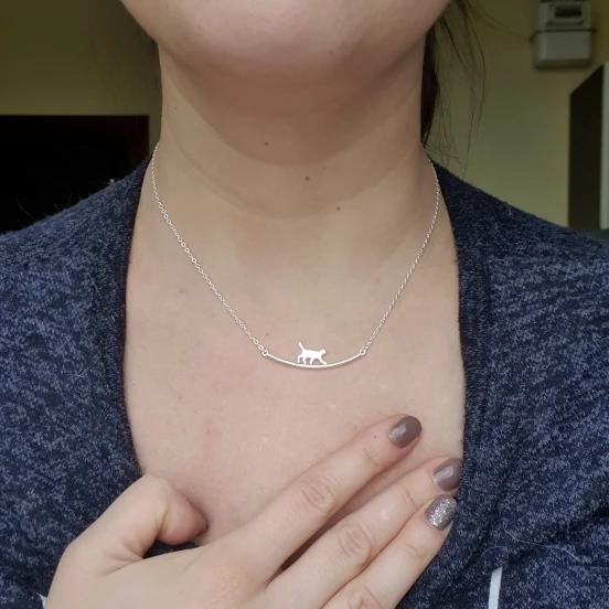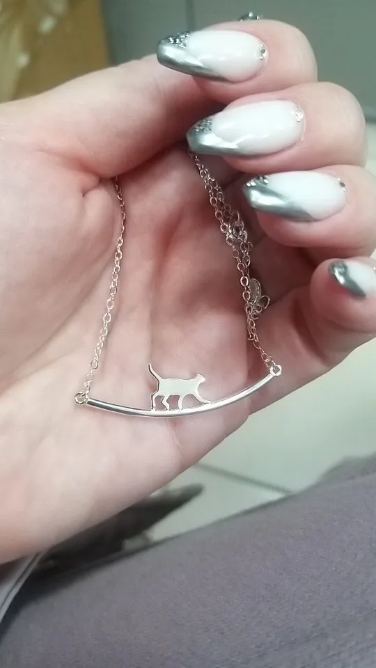 симпатишная цепочка, проба есть, серебро ли, хз, но покрытие похоже на серебряное, смотрится отлично, нежное такое. кошечка сперва показалась маленькой, но спустя неделю ношения прям в самый раз. если потемнеет, дополню отзыв, пока все прекрасно. 10 дней на НП отслеживающимся треком