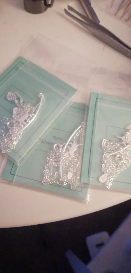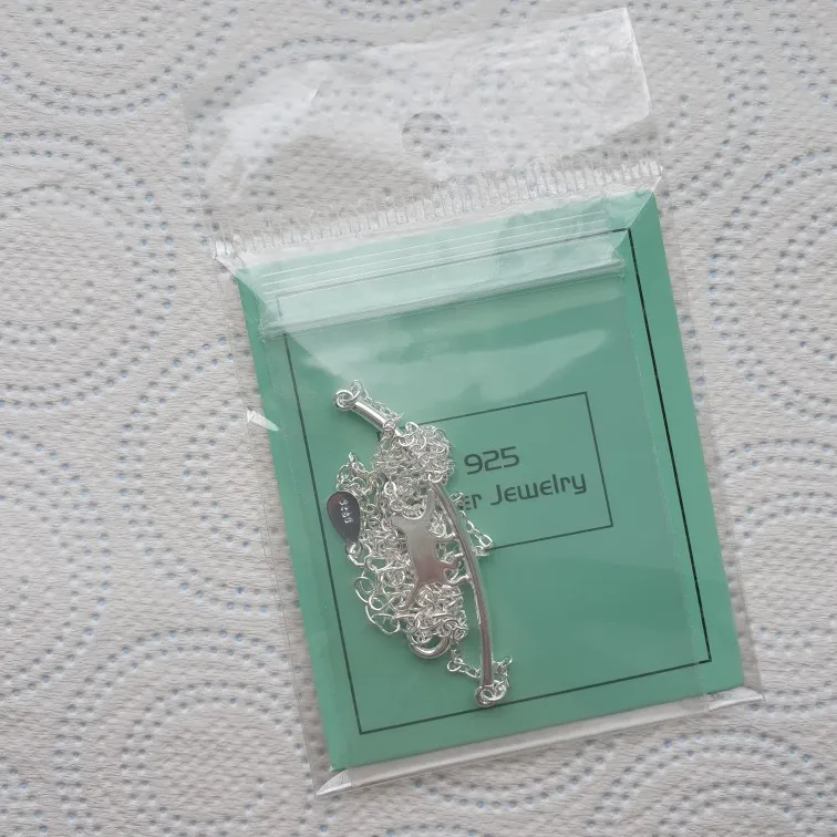 Очень элегантное минималистичное ожерелье. По цвету сильно отличается от всего, что на Али продают под видом серебра - действительно белое, сияющее, как в ювелирной магазине. Думаю, высокая проба. Замочек сделан хорошо, упругий. Длина цепочки регулируется - на фото на минимуме и на максимуме. Дошло за три недели, по Украине доставила Новая почта.