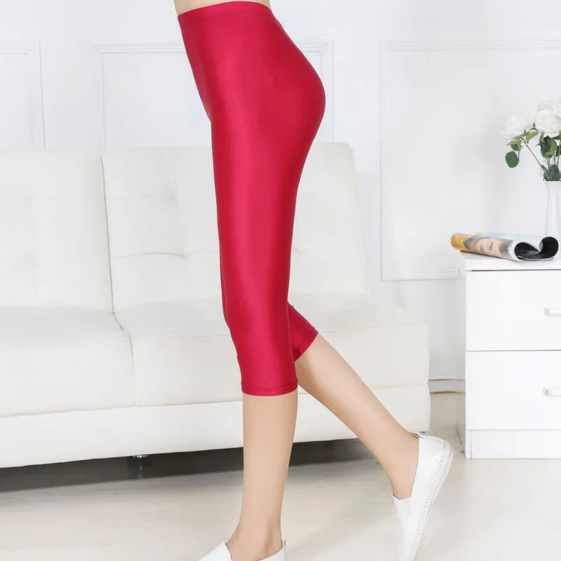 Блестящие леггинсы YRRETY, брюки ярких цветов, блестящие черные эластичные женские обтягивающие леггинсы с высокой талией, неоновые черные Капри