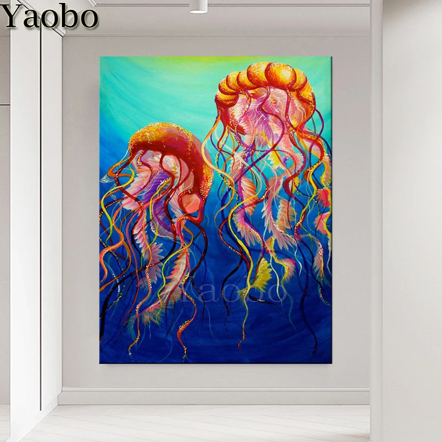 Алмазная живопись сделай сам с Медузой, 5D алмазная живопись, Набор для вышивки крестиком, инкрустированные алмазами, круглые стразы, морская жизнь