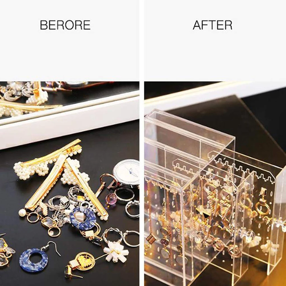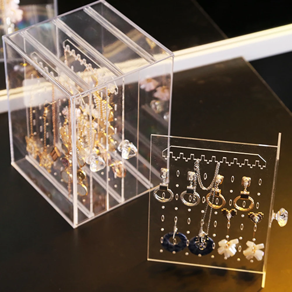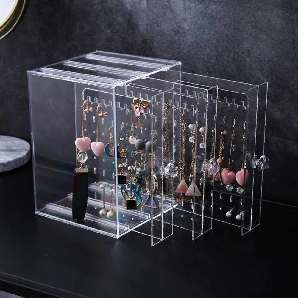 Высококачественная акриловая витрина для сережек, коробка для хранения ювелирных изделий, Пыленепроницаемый Чехол для хранения ящиков, прозрачныйчерный