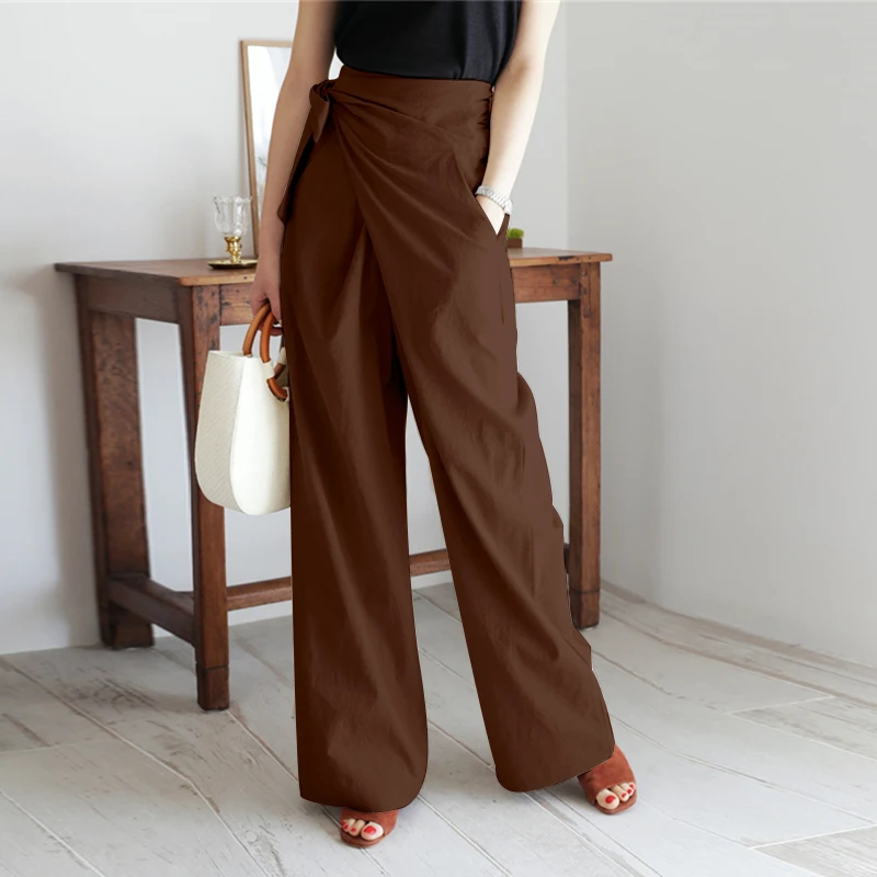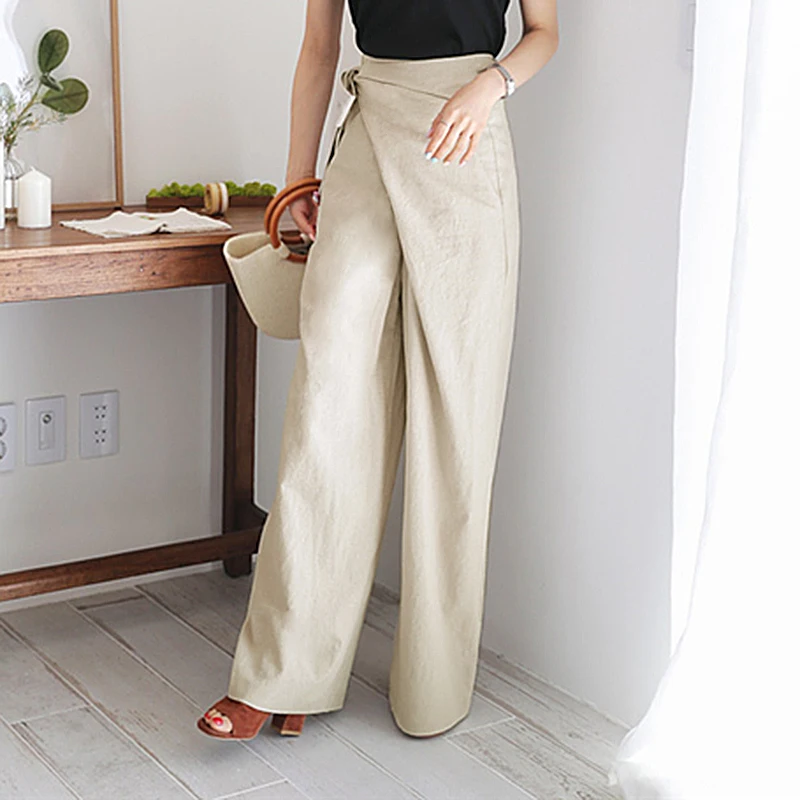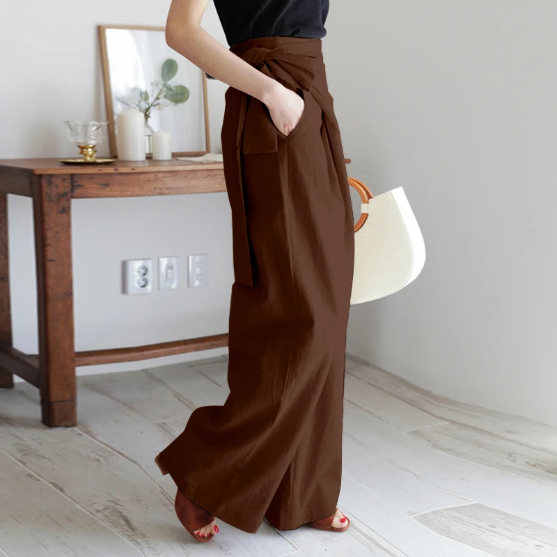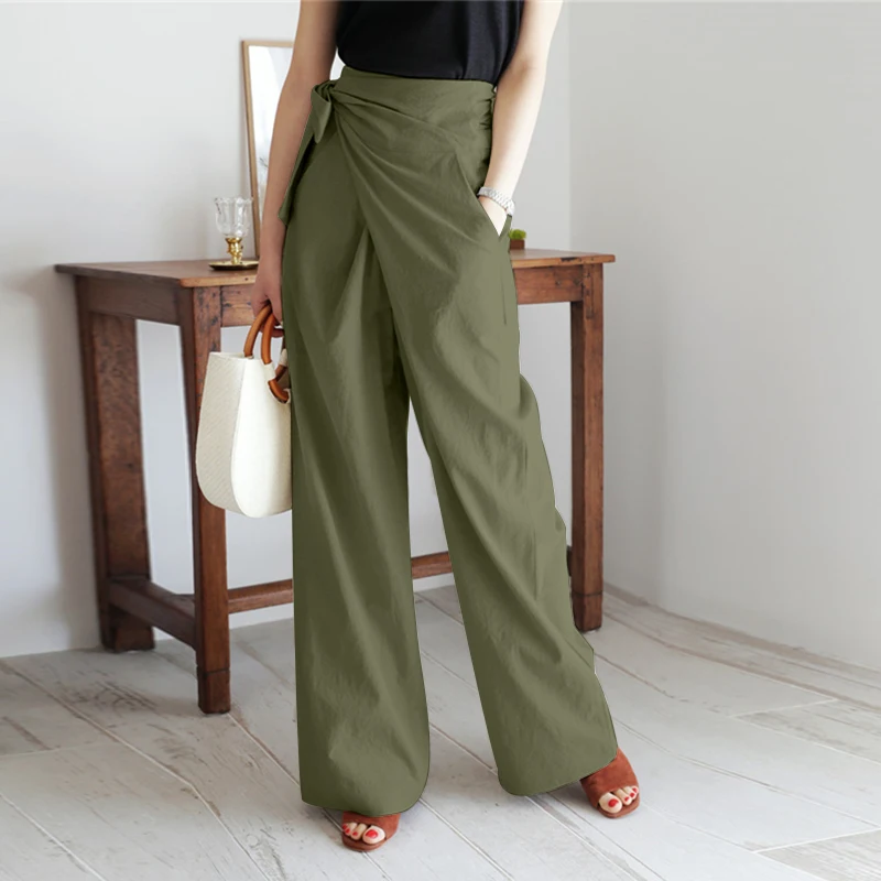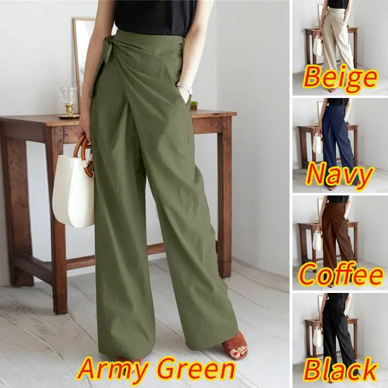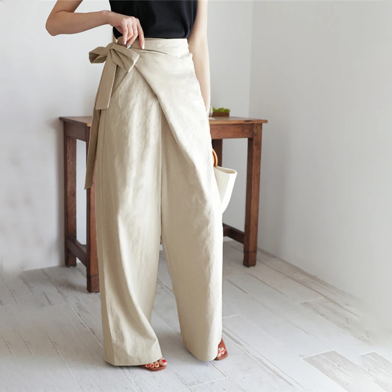 Женские винтажные хлопковые брюки Celmia, осенние длинные брюки, повседневные свободные офисные однотонные брюки с высокой талией и широкими штанинами для женщин, 2021
