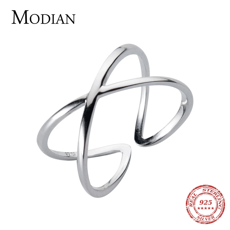 Женское блестящее кольцо Modian в форме буквы Креста, регулируемое кольцо из стерлингового серебра 925 пробы свободного размера, изящная Подарочная бижутерия