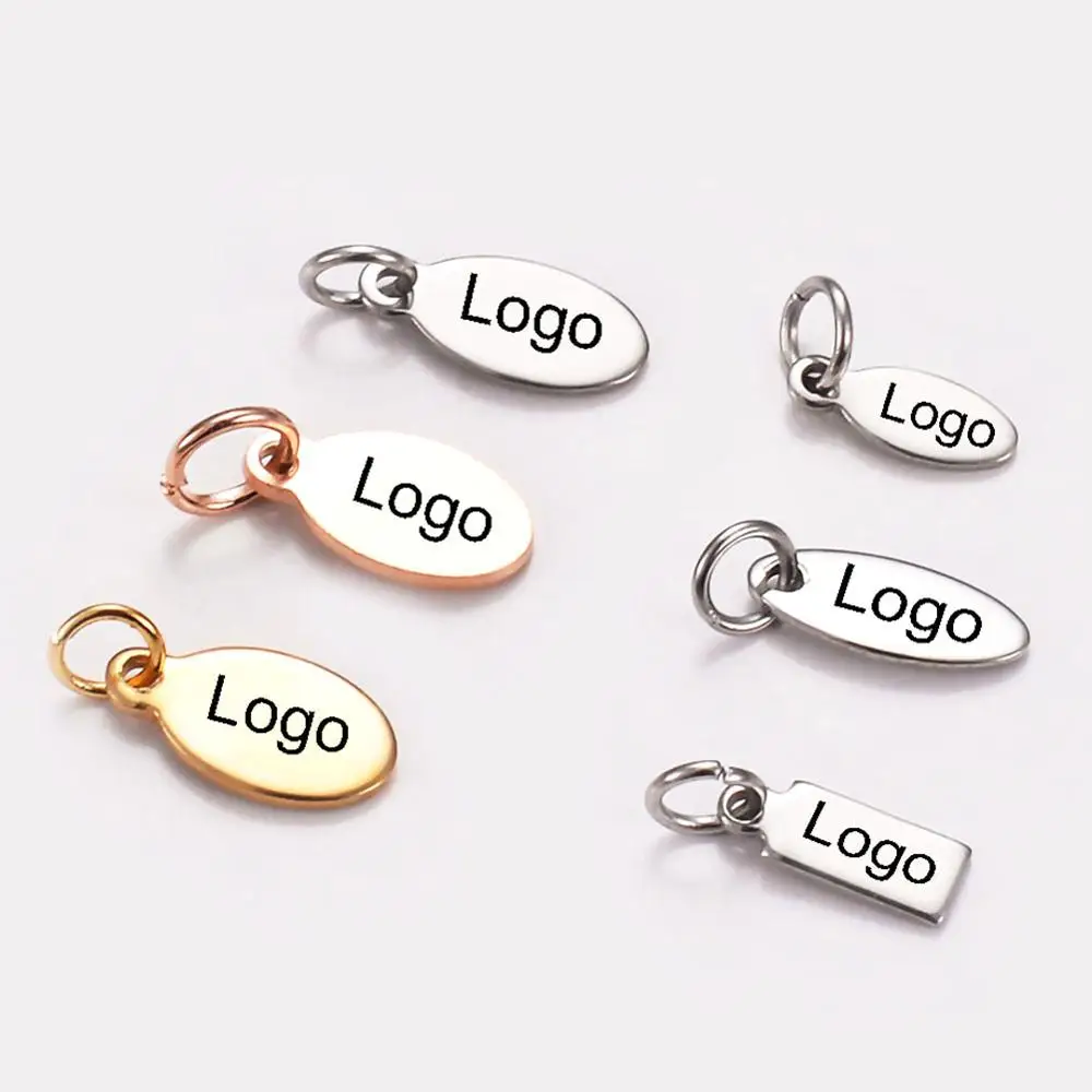 Небольшие этикетки из нержавеющей стали на заказ, 30 шт., очаровательные ювелирные изделия, ожерелье с гравировкой вашего собственного логотипа, фурнитура ручной работы сделай сам