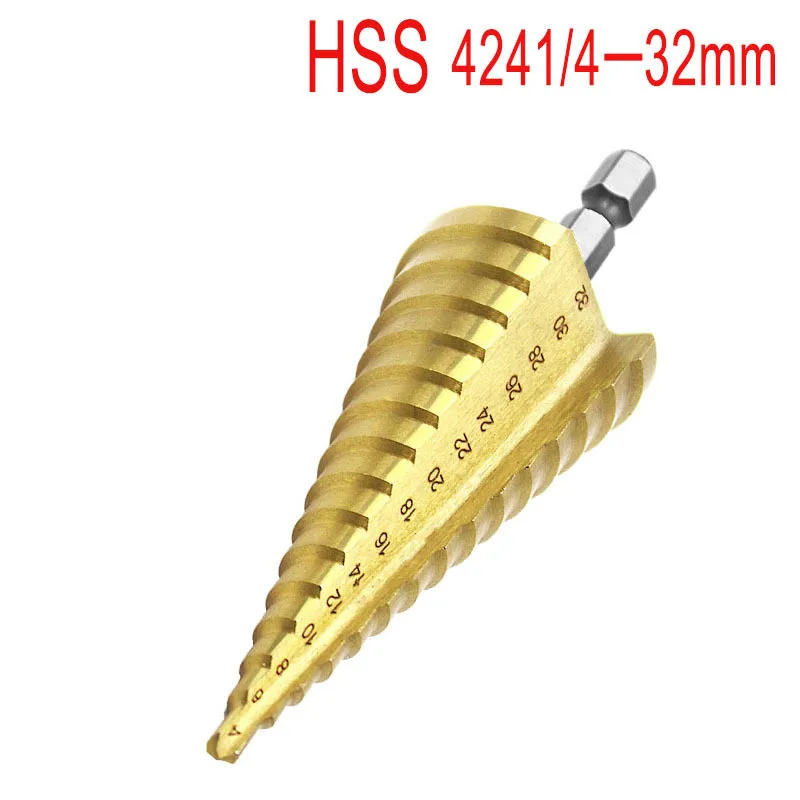 1 шт., ступенчатое сверло из быстрорежущей стали с шестигранной ручкой, 4-32 мм