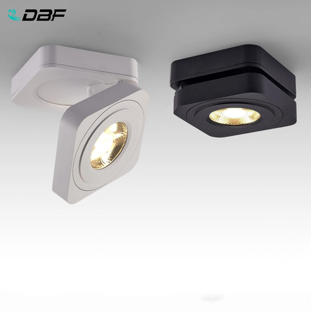 Точечный Светодиодный Светильник направленного света DBF, регулируемая квадратная поверхность под углом 360, потолочная лампа с COB матрицей, 5 Вт, 7 Вт, 10 Вт, 220 В переменного тока