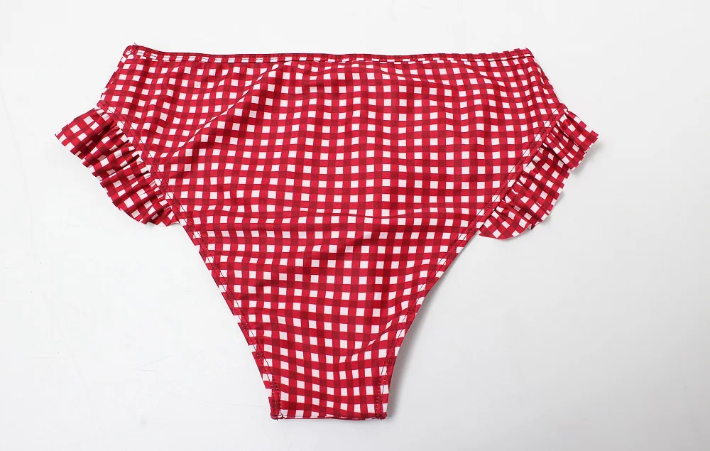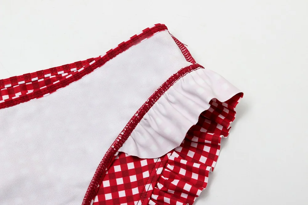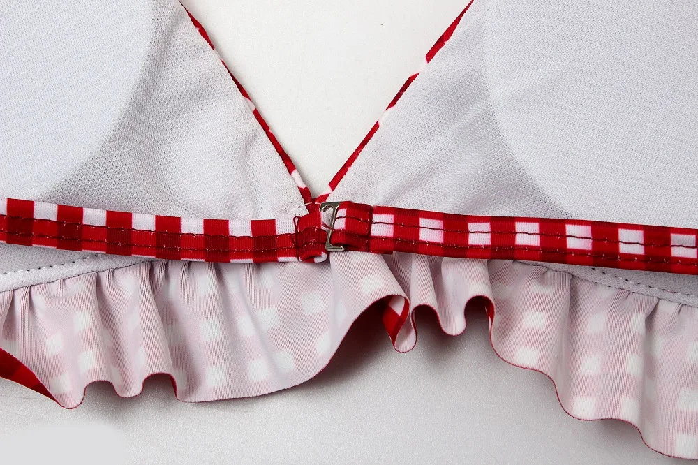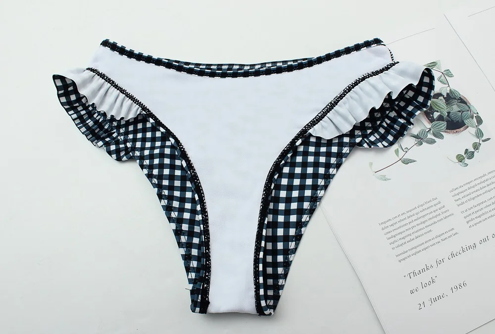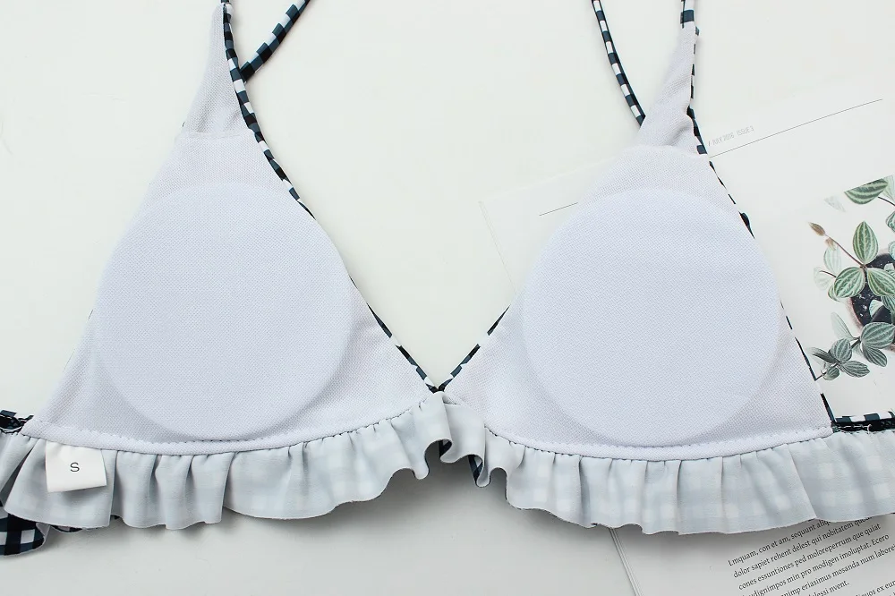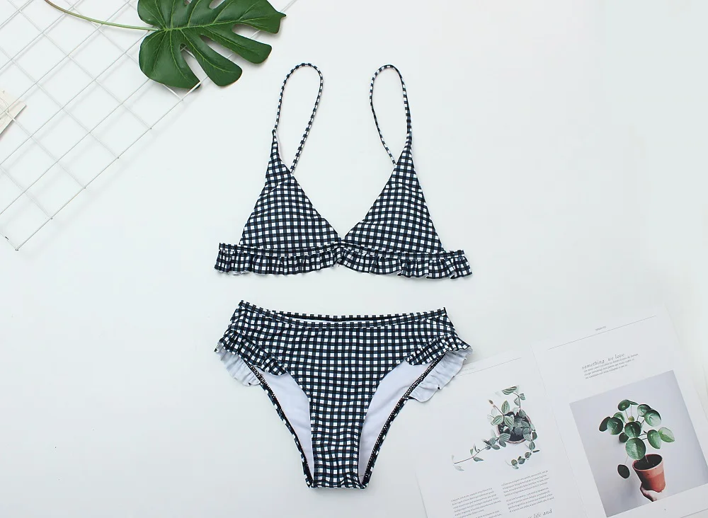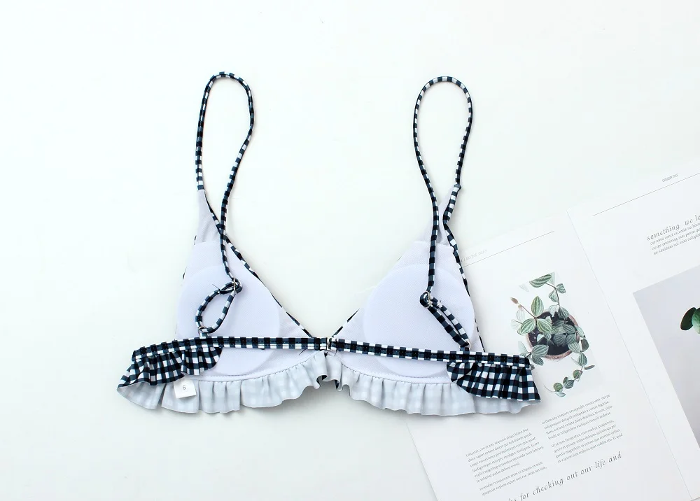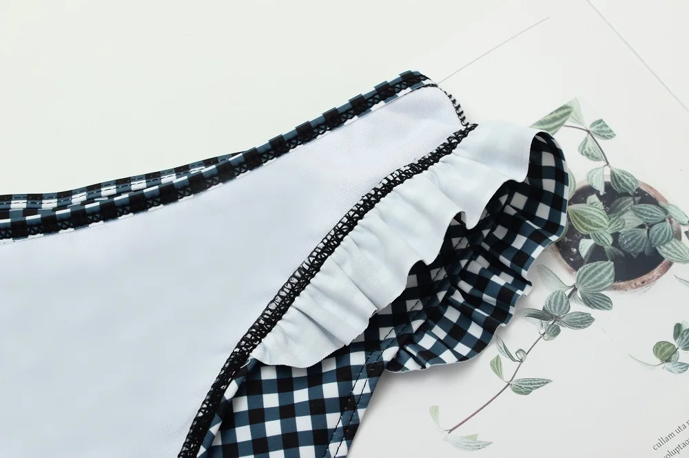 Комплект бикини женский, летний, клетчатый, с пуш-ап оборками