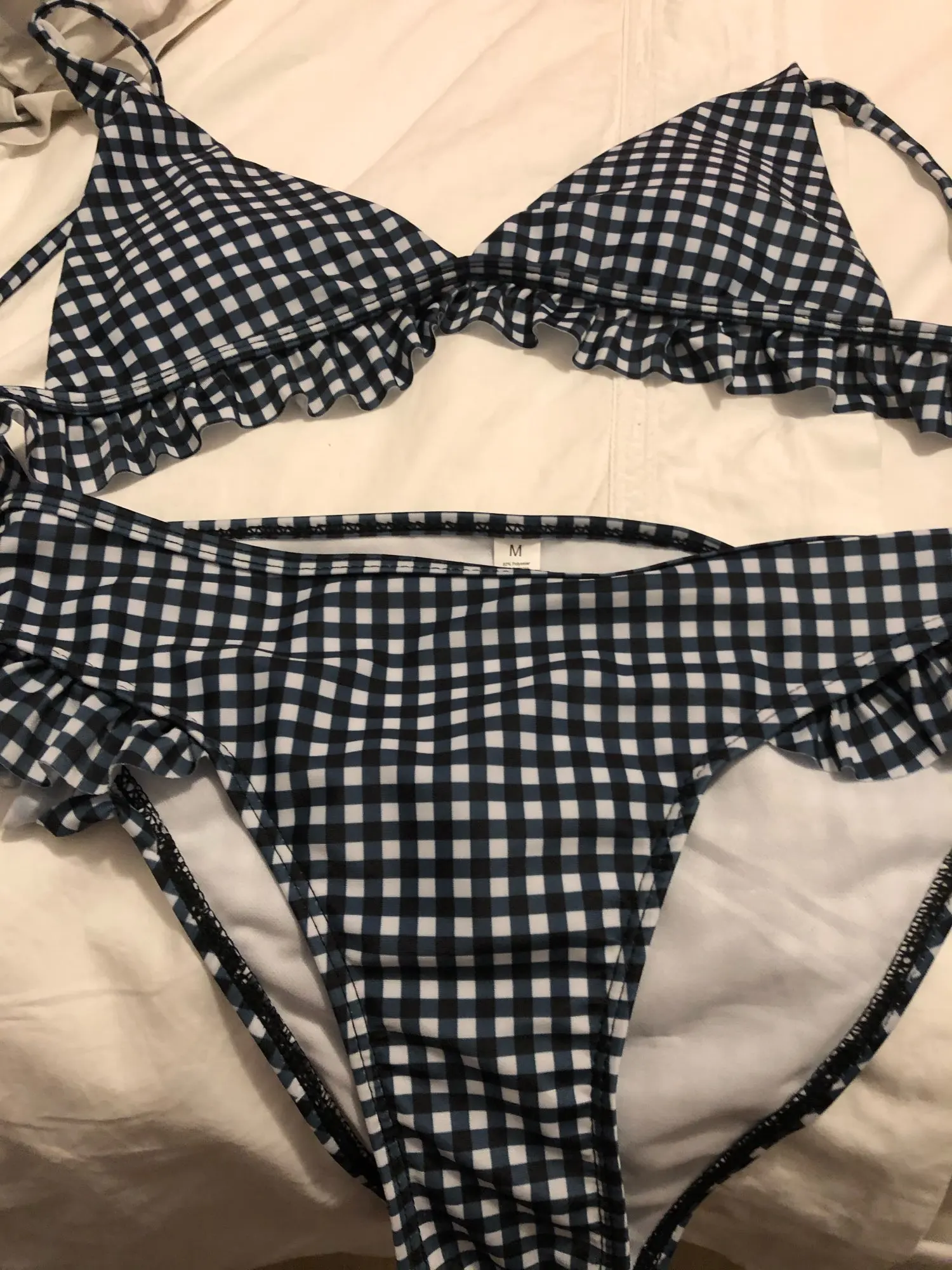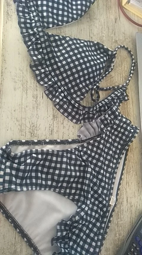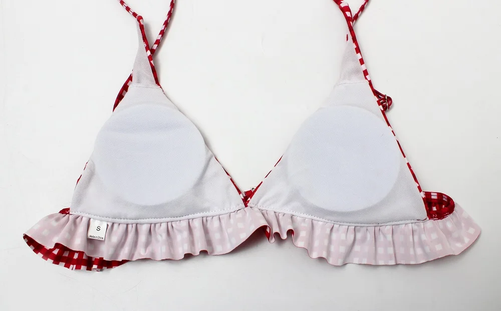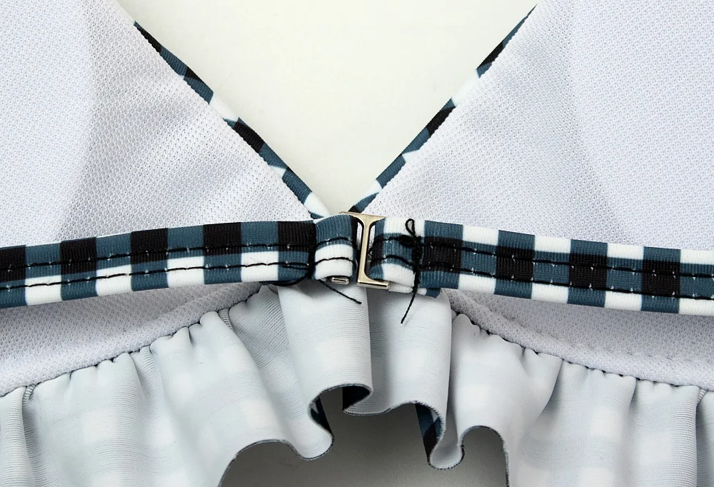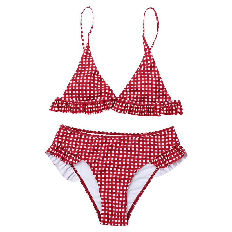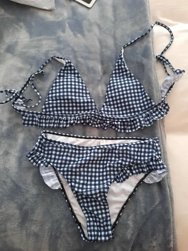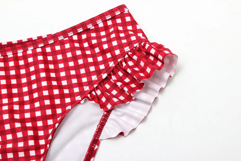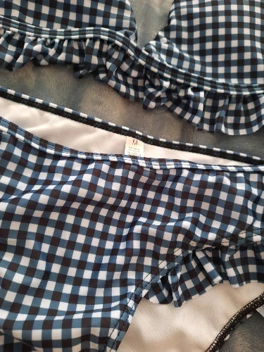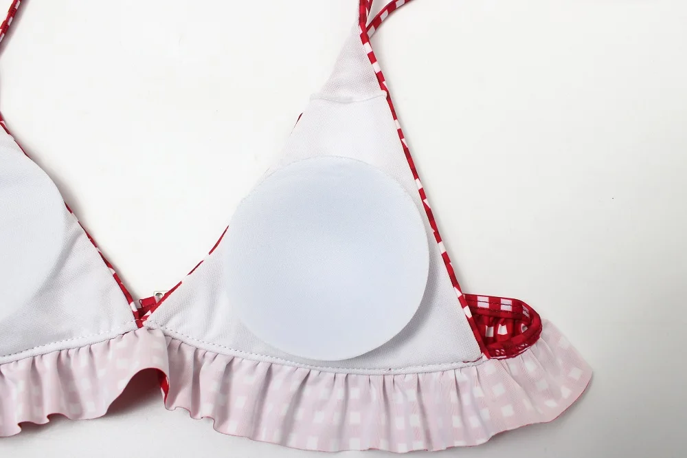 Комплект бикини женский, летний, клетчатый, с пуш-ап оборками