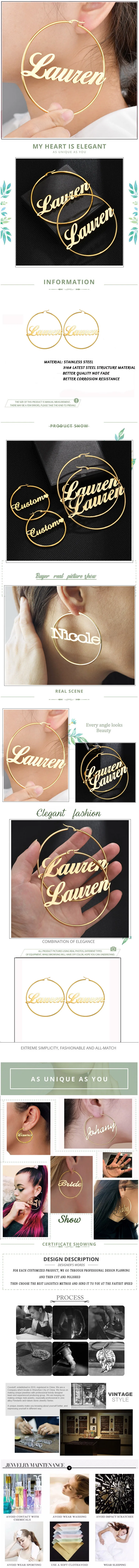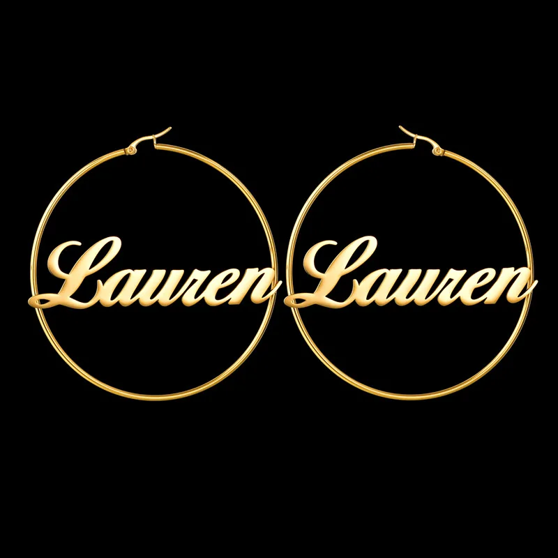 Серьги-кольца с именем на заказ из нержавеющей стали