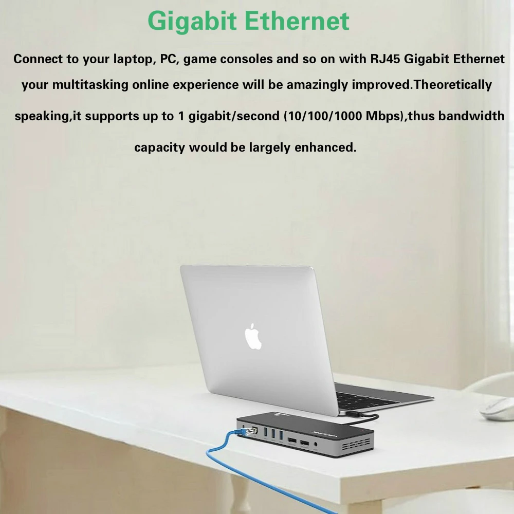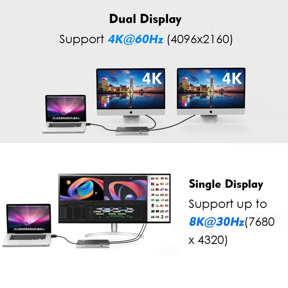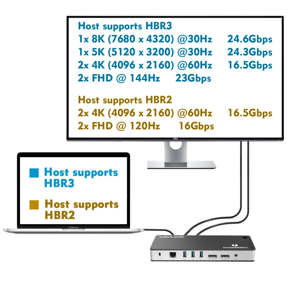 Док-станция WAVLINK Thunderbolt 3 USB-C 8K с зарядкой до 60 Вт, двойным дисплеем 4k, двойным дисплеем 1,4, 3xUSB Gen 2, 2xUSB3.0, гигабитный Ethernet, аудио для MacBook Pro и конкретных ПКОписание продукта:Док-станция Thunderbolt 3 Titan USB-C обеспечивает мощность до 60 Вт с возможностью подключения двух дисплеев 4K @ 60 Гц. USB-C компьютер с совместимостью портов USB3.1 Gen.2. Док-станция подключается к компьютеру Windows или Mac OS X с помощью одного кабеля Thunderbolt 3 (USB-C), позволяющего подключать до пяти устройств Thunderbolt к одному выходу Thunderbolt. Всего шесть нисходящих портов USB для расширения подключения к устройствам USB, включая один порт USB-C и два порта USB-A, работающих на макс. 10 Гбит/с, два порта USB-A на макс. 5 Гбит/с. В особенности добавление порта Gigabit Ethernet и 3,5 мм стерео-аудиовыхода.Характеристики продукта:* ( 1) технология Thunderbolt 3 второго поколения с помощью JHL7440Чипсет Titan Ridge solution.* ( 2) один кабель Thunderbolt 3 позволяет подключать к компьютеру Windows или Mac OS X несколько данных, видеоустройств и зарядку восходящего ПК. Совместимость с портами USB3.1 Gen.2 для компьютера USB-C.* ( 3) Поддержка USB-C мощности до 60 ватт мощности, что позволяет заряжать аккумулятор вашего ноутбука во время использования.* ( 4) два порта дисплея поддерживают разрешение DP1.4 до4096 × 2160 @ 60 Гц* ( 5) Поддержка дисплея для HBR3 (8,1 ГГц) Обратная совместимость с HBR2 (5,4 ГГц) и HBR (2,7 ГГц)* ( 6) один порт USB-C и два порта USB-A поддерживают скорость передачи данных USB3.1 до 10 Гбит/с* ( 7) два нисходящих порта USB-A поддерживают скорость передачи данных USB3.0 только до 5 Гбит/с* ( 8 )RJ45 Gigabit Ethernet обеспечивают безопасный, надежный высокоскоростной проводнойСети* ( 9) 4-полюсный телефонный разъем в комплекте с комбинированной аудиогарнитурой, разъемом для микрофона.* ( 10) механический замок безопасности удобен многим пользователям.* ( 11) совместим с Microsoft Windows и Apple Mac OSX.Системные требования:1. Система Windows или Mac OS2. Компьютер с 3 портами Thunderbolt USB-C компьютер с USB3.1 с передачей данных, USB-C мощности и альтернативным режимом видеоНапоминание:1) поддерживает только DP1.4, а не другие версии. При использовании адаптера DP адаптер DP также должен поддерживать DP1.4.2) Этот продукт имеет штепсельную вилку ЕС/США/Великобритании, мы отправим ее вам в соответствии с вашей страной, если у вас есть особые вопросы, пожалуйста, оставьте нам сообщение при оформлении заказа, спасибо.