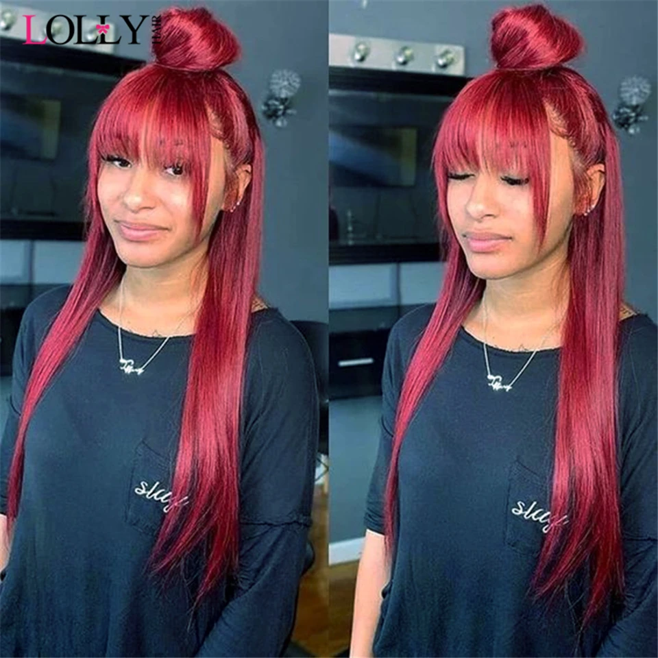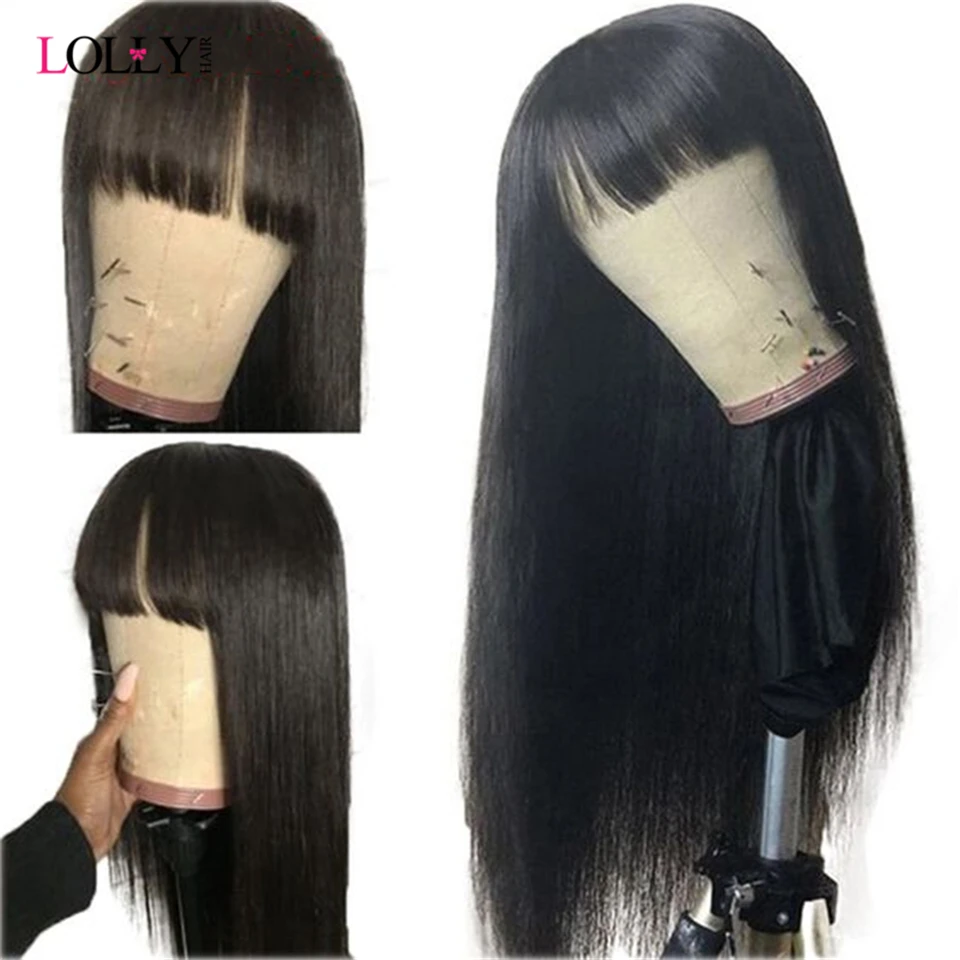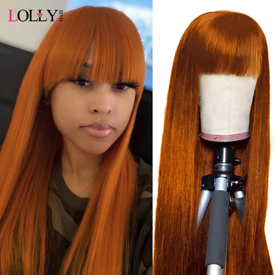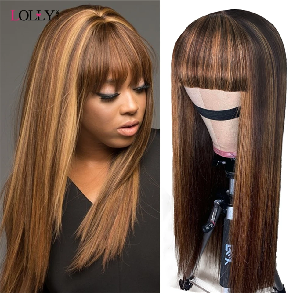 Парик с челкой из прямых бразильских человеческих волос, парики с челкой, полный машинный парик для чернокожих женщин, парик из человеческих волос с Омбре