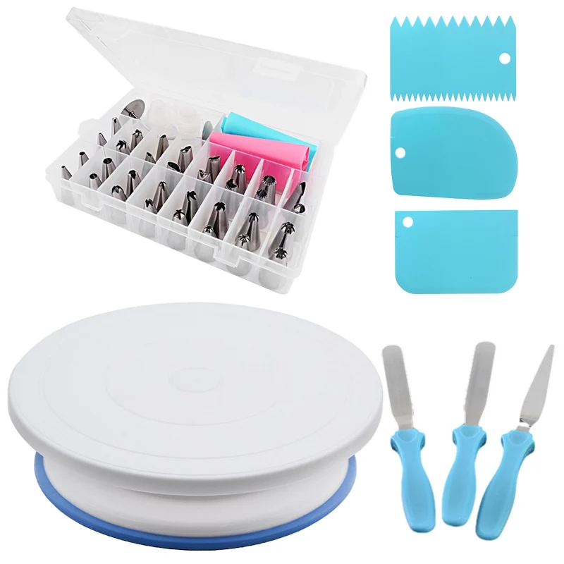 D: Набор насадок для выпечки 38 шт. +1 шт. поворотный стол + 3 шт. лопатка для крема + 3 шт. нож для теста
