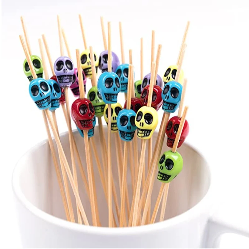 50 шт. Одноразовые Бамбуковые вилки в виде черепа для вечерние ринки, буфета, домашний декор, фрукты, десерты, еда, Коктейльные сэндвичи, вилки-палочки, шпажки
