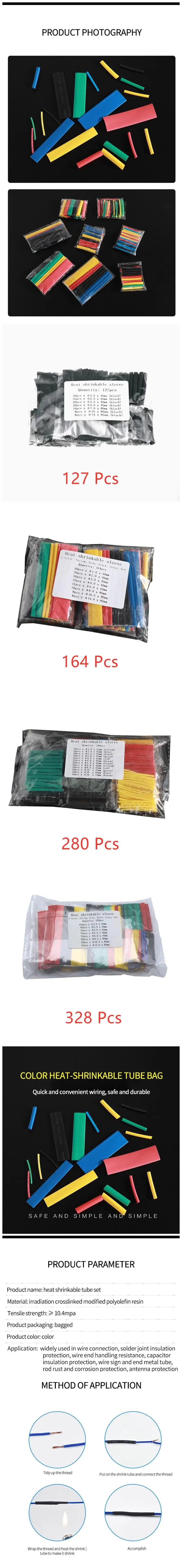 Набор термоусадочных полиолефиновых трубок в ассортименте, 127 шт.164 шт.280 шт.328 шт.