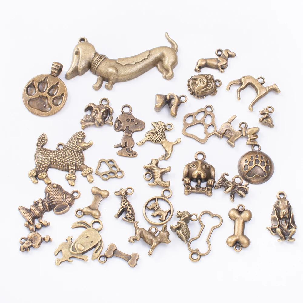 50 г Лидер продаж Металл смешанный Шарм животное собака антикварный бронзовый браслет ожерелье ручной работы ювелирные изделия DIY