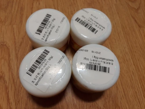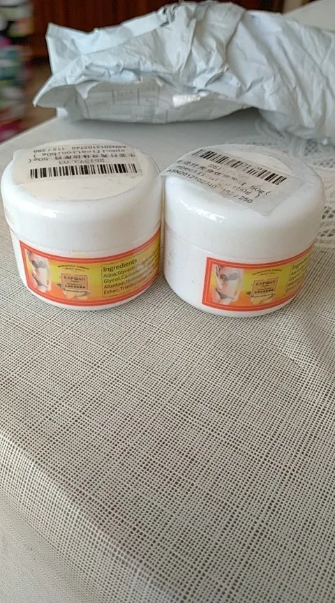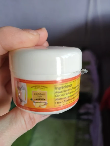 Мой пакет прибыл хорошо. Упаковано по мере необходимости, но меньше, чем я думал, но это 50 граммов заказанных. Горшок держится в полой руке в качестве образца. Плотно запечатанный и герметичный. Крем жидкий и очень хорошо пахнет. Я не могу ждать, чтобы проверить его. В зависимости от ингредиентов, указанных на этикетке горшка, продукт не является 100% естественным, это стыд. Все еще нужно проверить. Инструкции по использованию отсутствуют, но рекомендуется принять меры предосторожности в случае аллергии на определенные ингредиенты. В то же время, я рекомендую продавцу, который слушать.