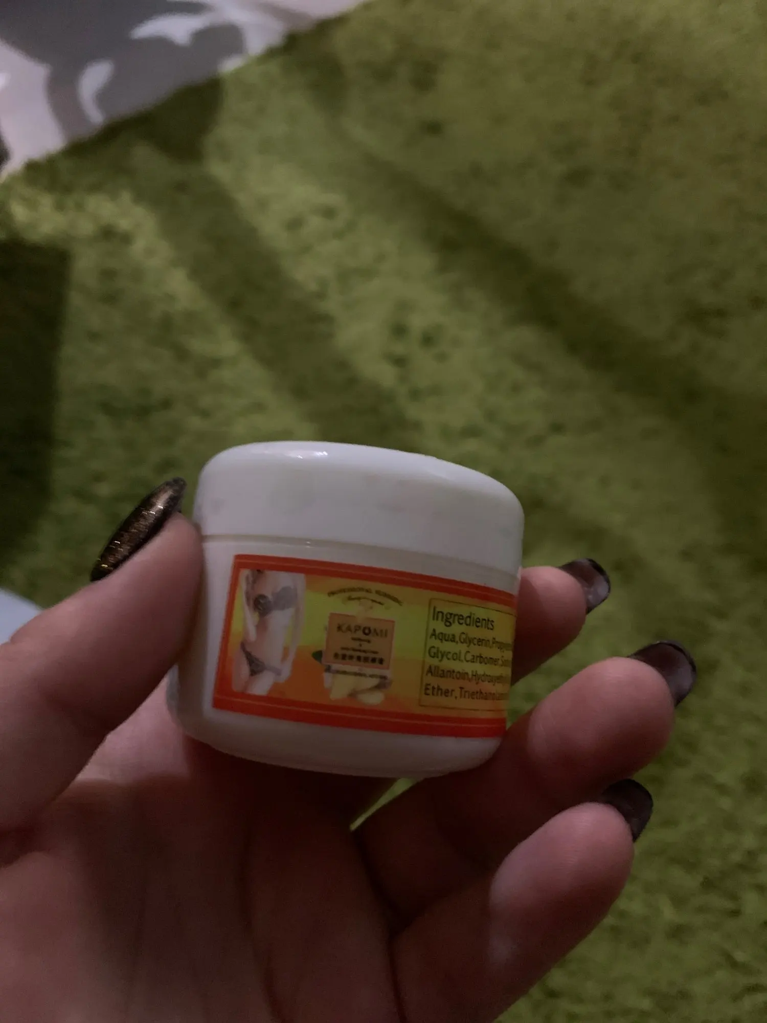 Прибыл спустя пару месяцев, забросили в почтовый ящик. Баночка маленькая, но наносить много на тело его не нужно. Наносила перед сном и через минут 10 начало жечь так, что думала смывать дабы не было химического ожога, но все обошлось. Едкого запаха нет. Если эффекта от него не будет, то можно использовать, как увлажняющий крем
