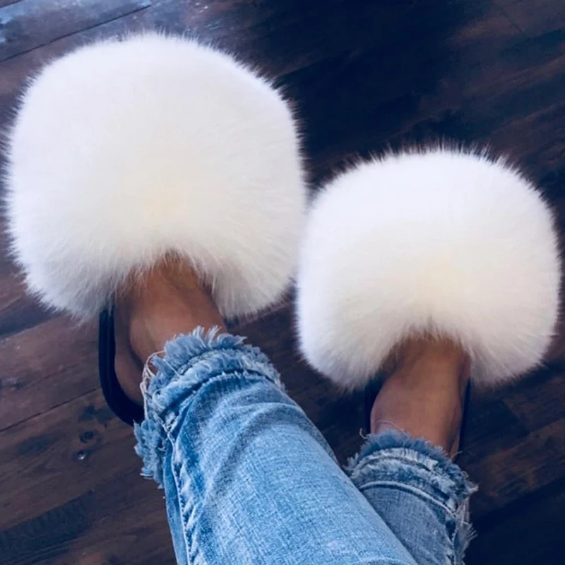 Шлепанцы женские с натуральным лисьим мехом енота, сланцы, пляжные ...