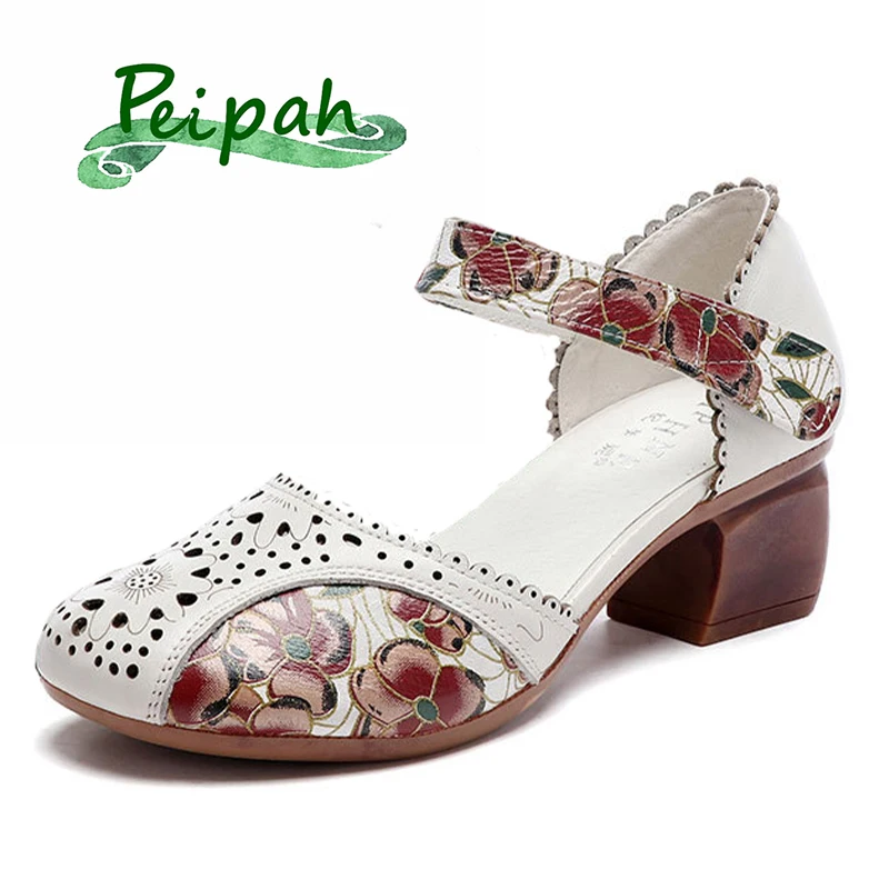 PEIPAHженские сандалии на платформе, женские из натуральной кожи; Женские туфли с вырезами; Этнические Разноцветные Повседневные туфли